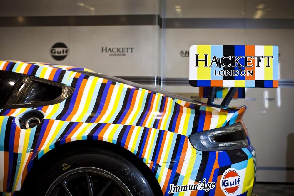 Az Aston Martin Vantage GTE versenyautót egy optikai illúziókra szakosodott német művész, Tobias Rehberger vette kezelésbe. Olyan, geometrikus ábrákat használt, amelyeken ugyanúgy “nem tud megkapaszkodni a tekintet”, mint a gyorsan mozgó tárgyakon.
