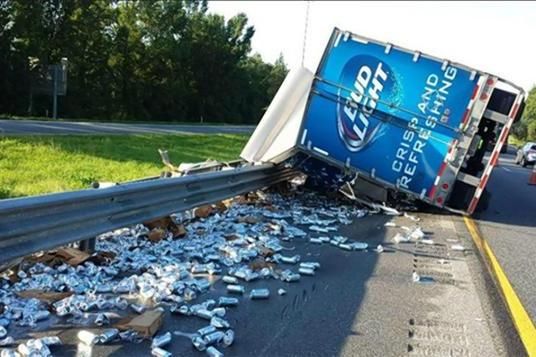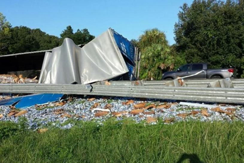 Több ezer sörösdoboz szóródott szét egy floridai autópályán, miután a Budweiser sörfőzde kamionja felborult a belső sávban.