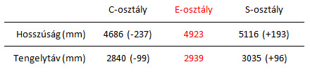 Miután harminc lépés távolságból ikertestvérként hasonlítanak egymásra a Mercedes klasszikus limuzinjai, és jóformán csak colstokkal különböztethetők meg egymástól, kezdjük az ismerkedést a méretekkel. Az új E-osztály elődjénél 43 mm-rel hosszabb, a tengelytáv 65 mm-t nőtt.