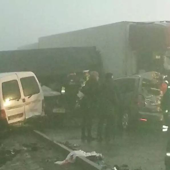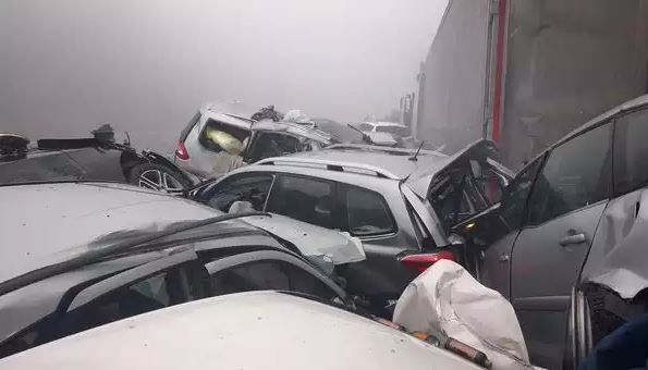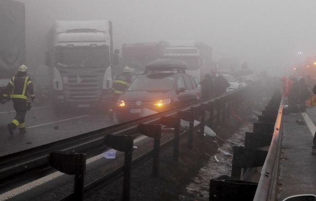 A sűrű köd miatt történt tömegbalesetben hírügynökségi jelentések szerint négyen meghaltak és mintegy harmincan megsérültek.