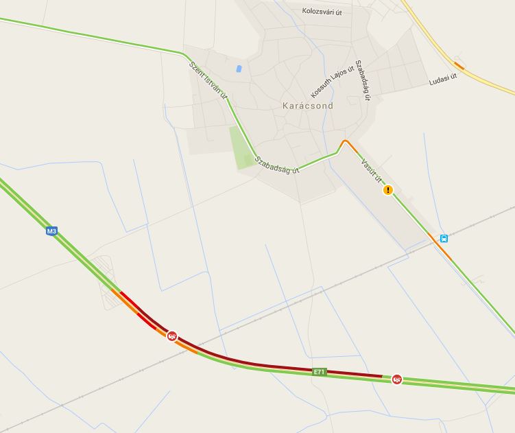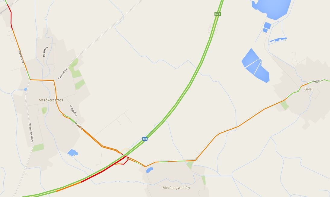 De ez szépen látszik a google térképén is, már vörösen izzik az érintett szakasz.
