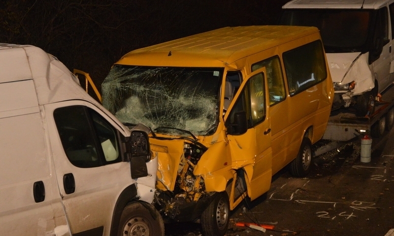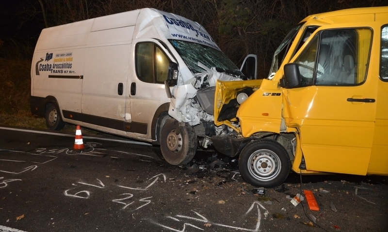 Két furgon ütközött frontálisan ütközött december 3-án éjszaka a a 84-es főúton, a balesetben a fehér Fiat Ducato eddig ismeretlen okokból áttért a szemközti sávba, ahol a sárga Volkswagen éppen egy Ford Transitot szállított tréleren.