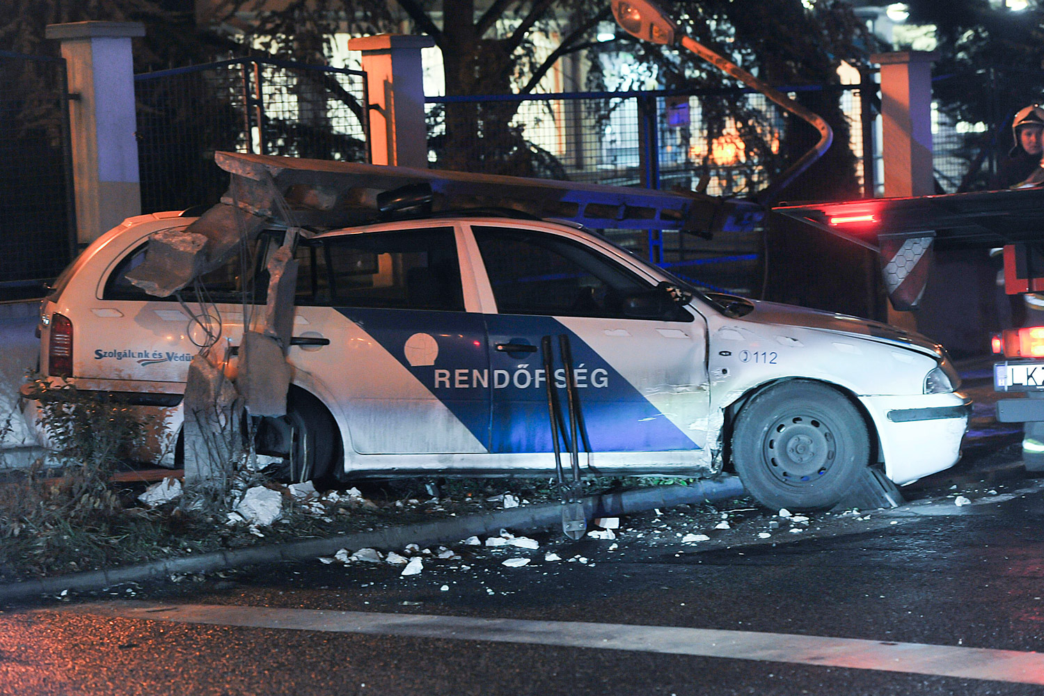 Villanyoszlop lapított ki egy rendőrautót Pesten – fotók