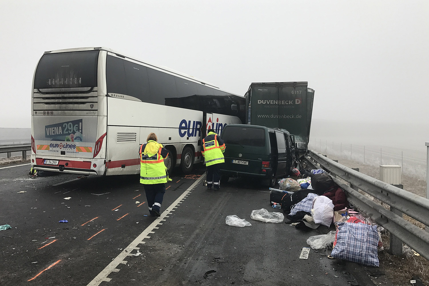 A sztráda határ felé vezető oldalán 7 óra 30 perc körül hét jármű ütközött össze, a határátkelőtől mintegy 1 kilométerre. Két román kamion, két kisteherautó, egy román busz és két bolgár kisteherautó volt részese az ütközésnek. A balesetben két török és egy román férfi, valamint egy bolgár nő meghaltak, tizenöten megsérültek.