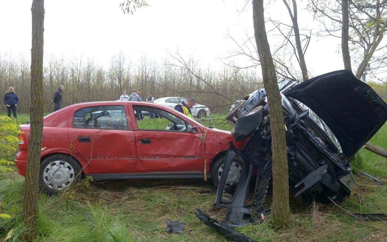 Két személygépkocsi ütközött össze a 83-as főút 46-os kilométerszelvényénél, Gyarmat közelében. Az Opel Astra és a Volvo V50 a baleset következtében lecsúszott az útról és az út melletti füves területre érkeztek, a Volvo még az oldalára is borult.