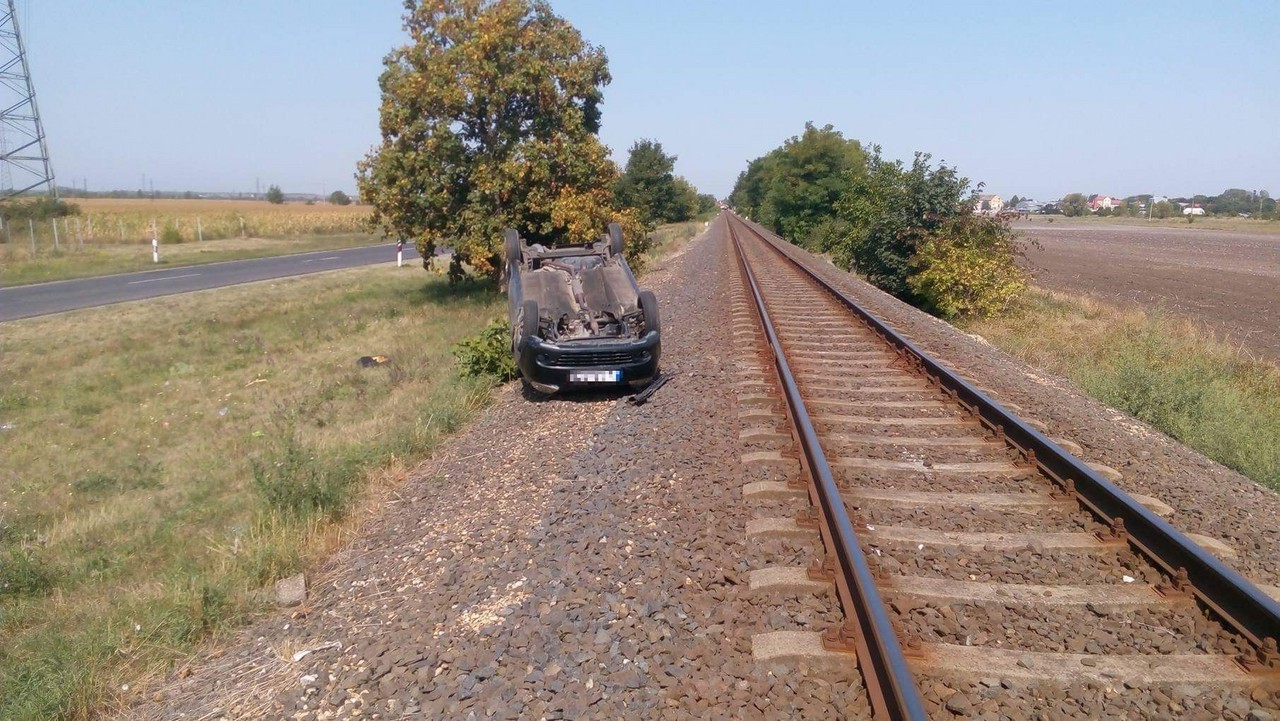 A jármű a vasúti töltésoldalon, a sínekhez közel állt meg. A kocsi vezetőjéhez mentőt kellett hívni.