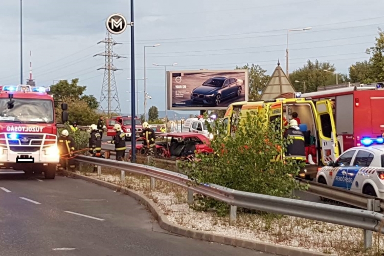 Összeütközött két személyautó szombat reggel Budapest X. kerületében, a Ferihegyi repülőtérre vezető út KÖKI terminál üzletközpont előtti szakaszán. A balesethez a főváros hivatásos tűzoltóit riasztották, akik áramtalanították a járműveket és megkezdték a műszaki mentési munkálatokat. A balesetben három ember megsérült, a beszorult súlyosan, a másik jármű utasai pedig könnyebben,a sérülteket a mentők kórházba szállították.
