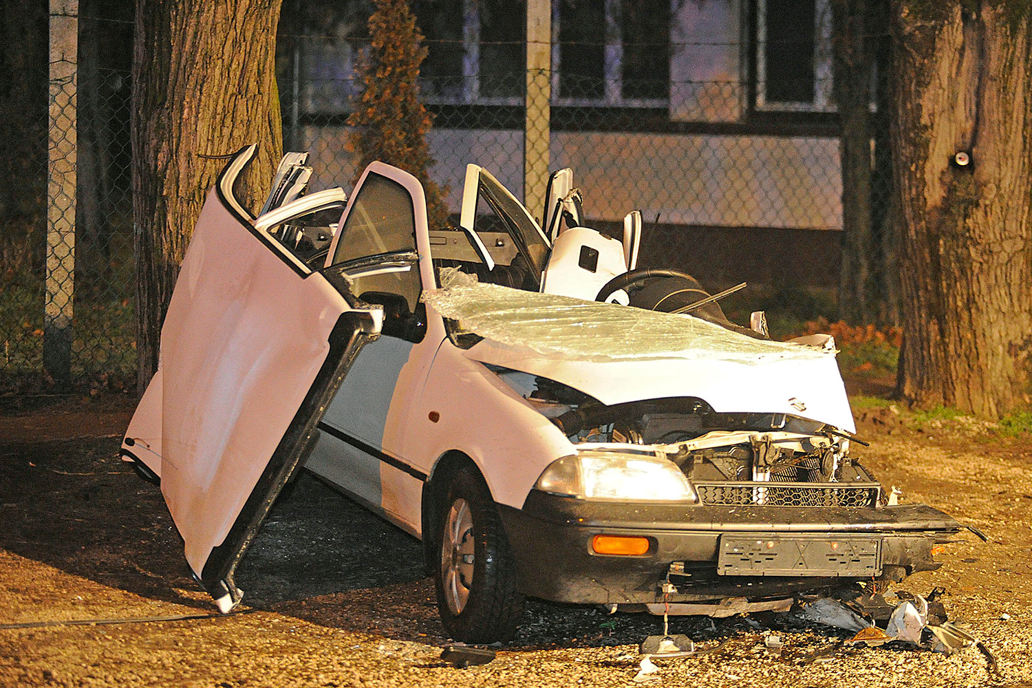 A Blaháné útján két személygépkocsi ütközött össze. Az egyik autó annyira összeroncsolódott, hogy a tetejét is le kellett vágniuk a tűzoltóknak.