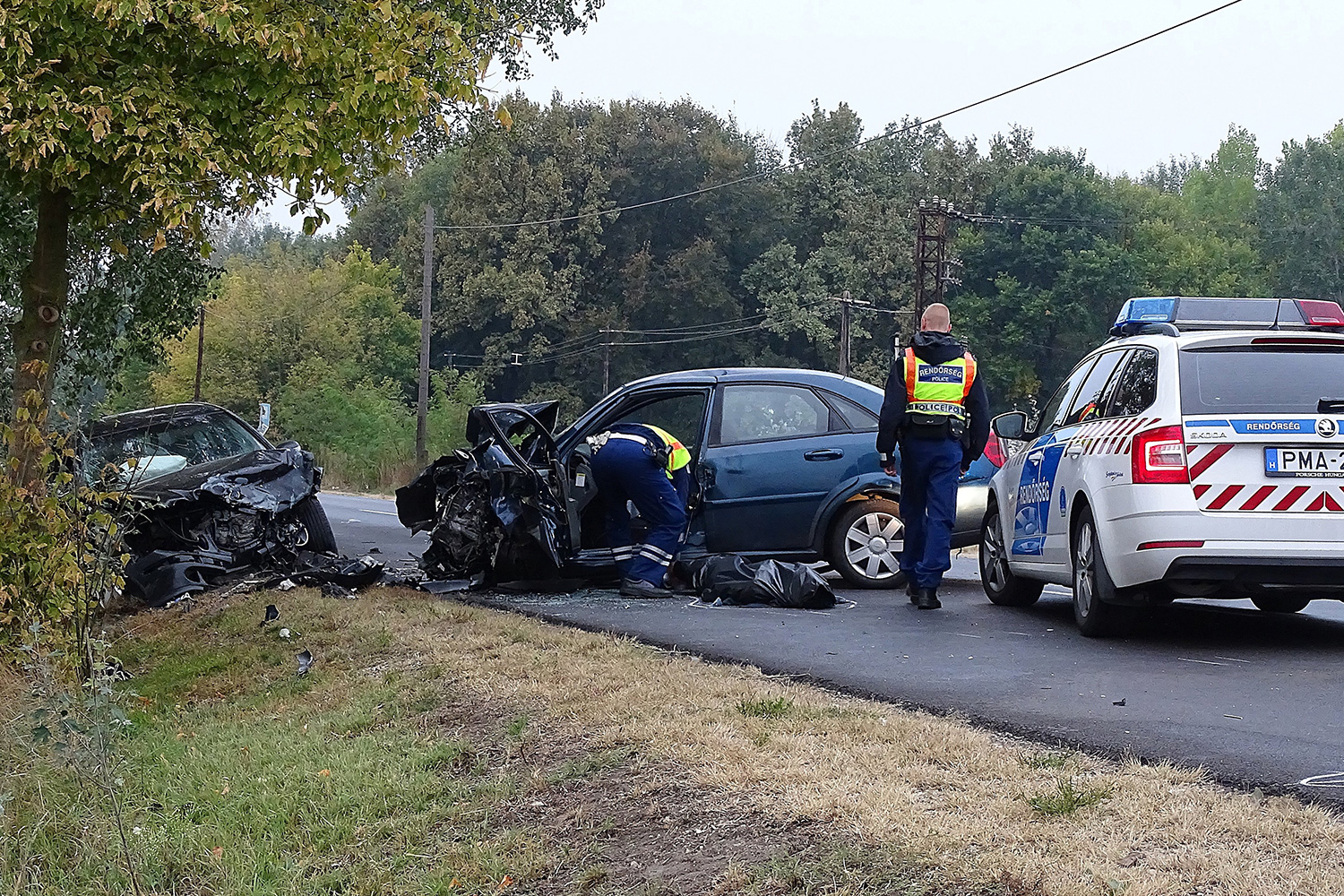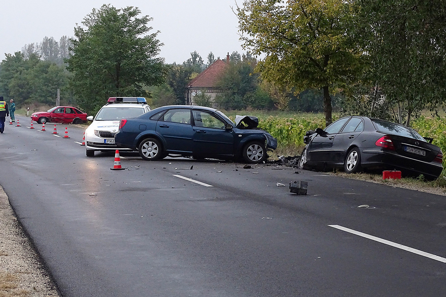 Három személyautó ütközött össze, a helyszínen egy személy életét vesztette, egy sofőr súlyosan sérült meg. A helyszínelés idejére a rendőrök fél pályán lezárták a főutat.
