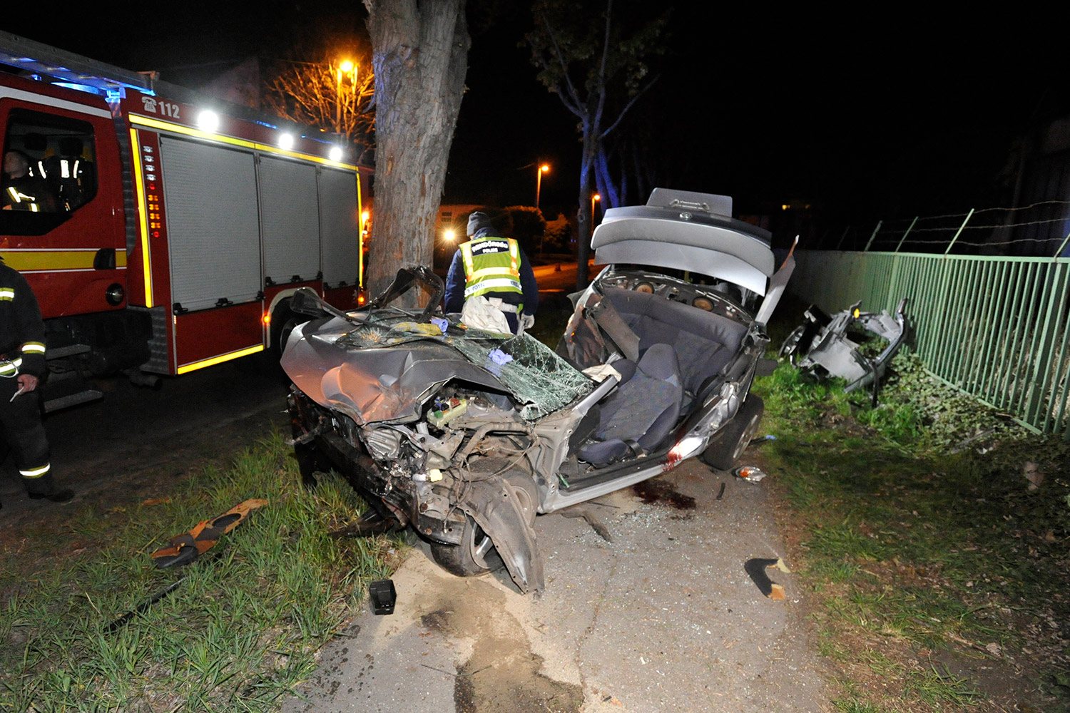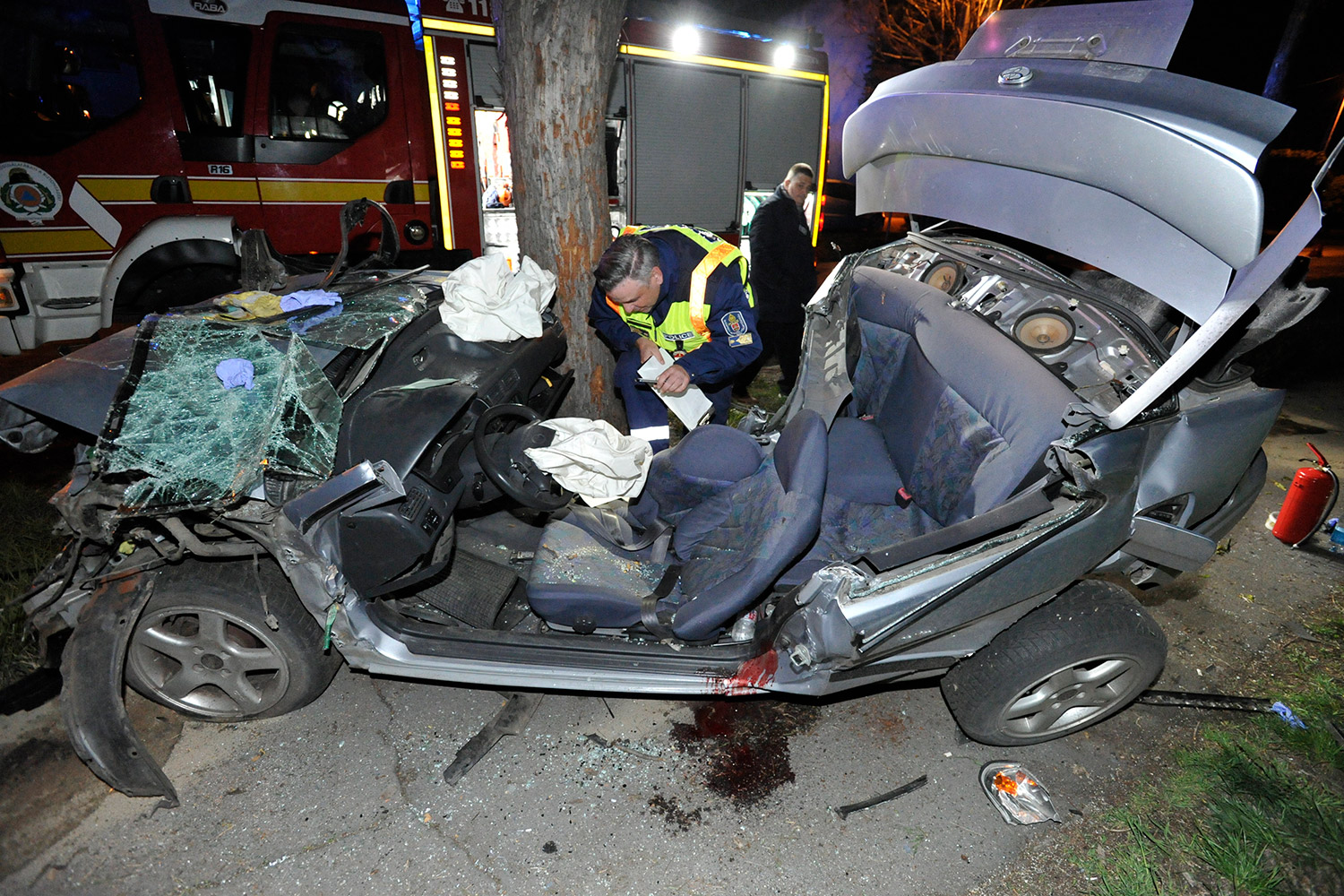 Eddig tisztázatlan körülmények között, április 16-án 1 óra 30 perckor Budapest XIII. kerületében, a Tatai utca 72. szám előtt egy személygépkocsi fának ütközött.