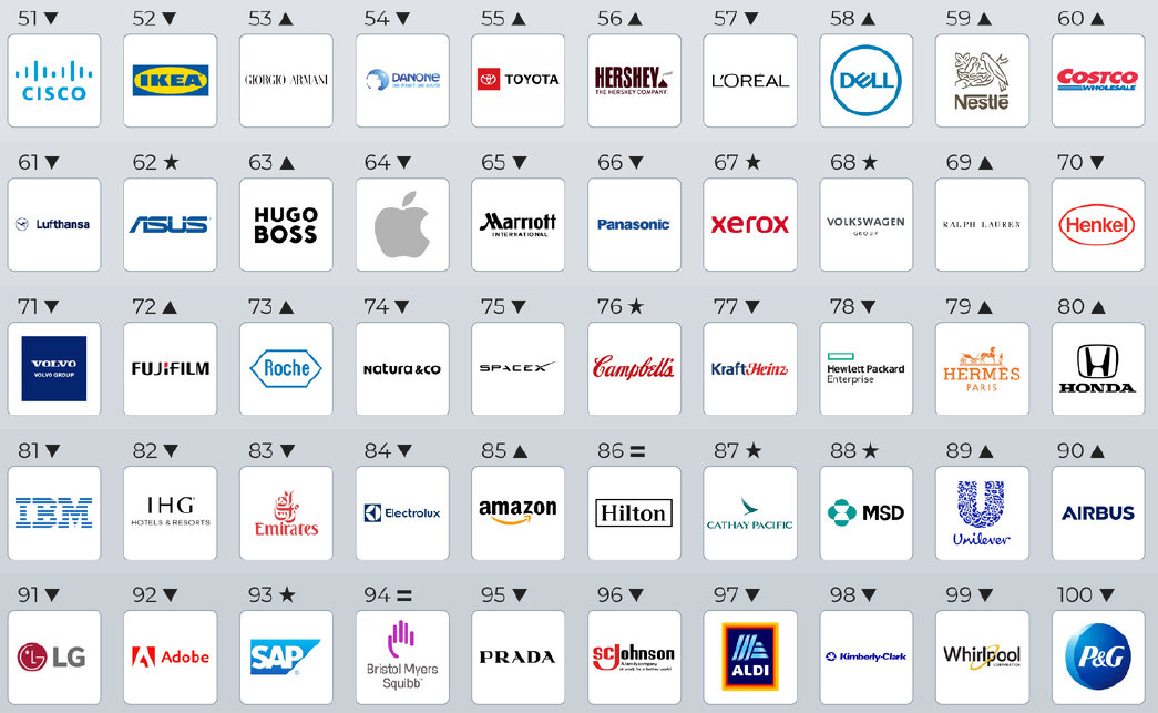 Az autógyártók rangsorát a Ferrari vezeti, közvetlenül a Rolex mögött ez a leginkább nagyra tartott vállalat a világon. A harmadik a LEGO – ez is jól mutatja, mennyire sokszínű a rangsorolás feltételrendszere.