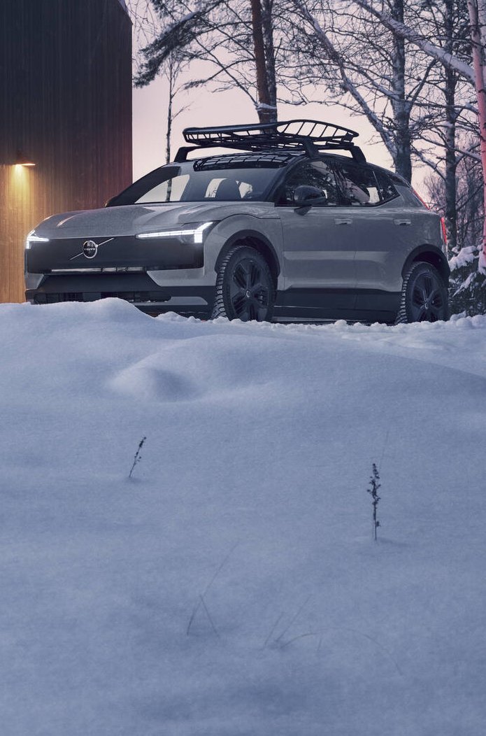 A recept azonban a szokásos. Az EX30-ből kialakított terepbarát modell orrpanelje és csomagtérajtaja egyaránt sötét árnyalatú betétet kapott, az előbbit egy nevezetes hely, a legmagasabb svéd hegycsúcs, a 2097 méter magas Kebnekaise koordinátái, illetve a környék topográfiai rajza díszíti.