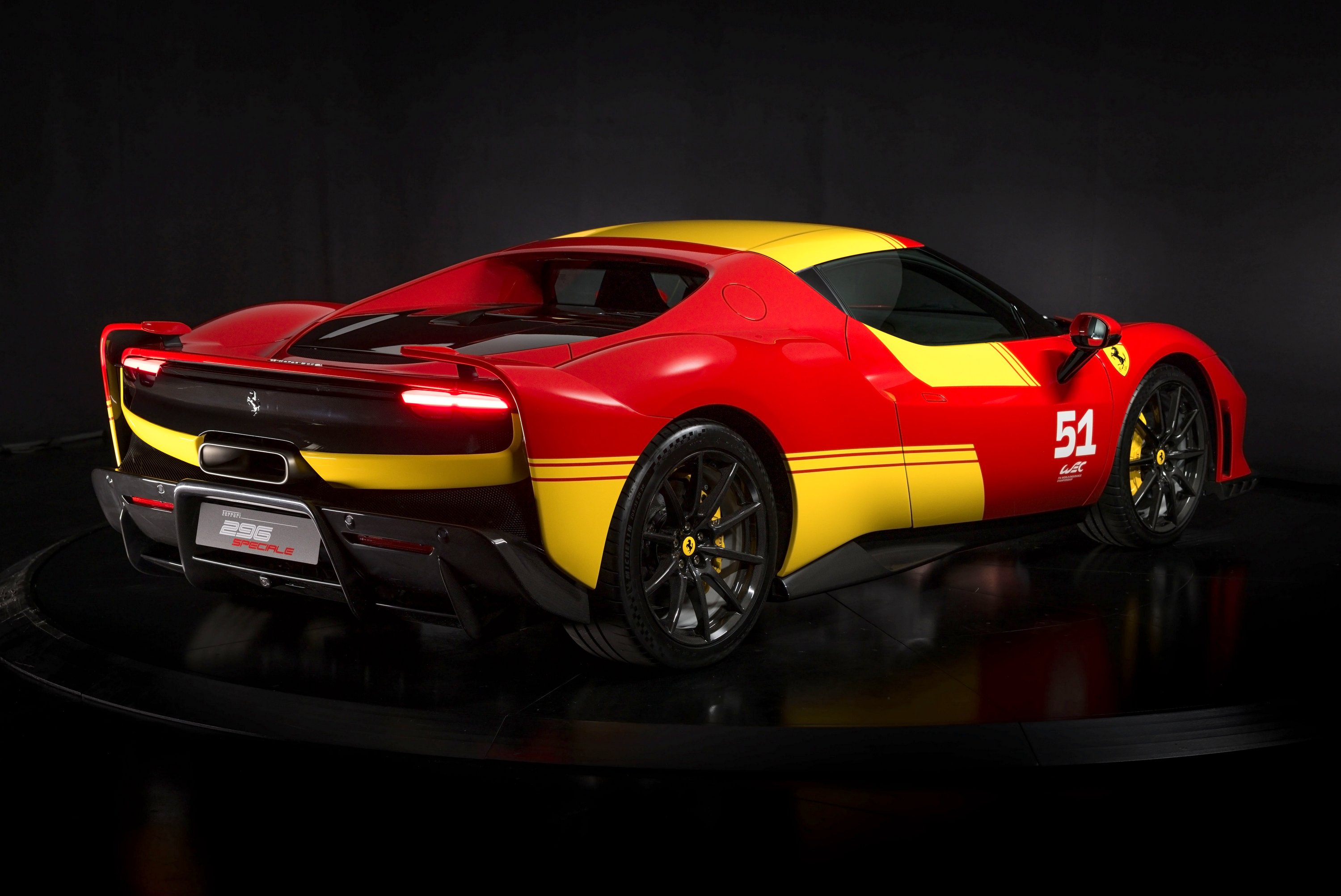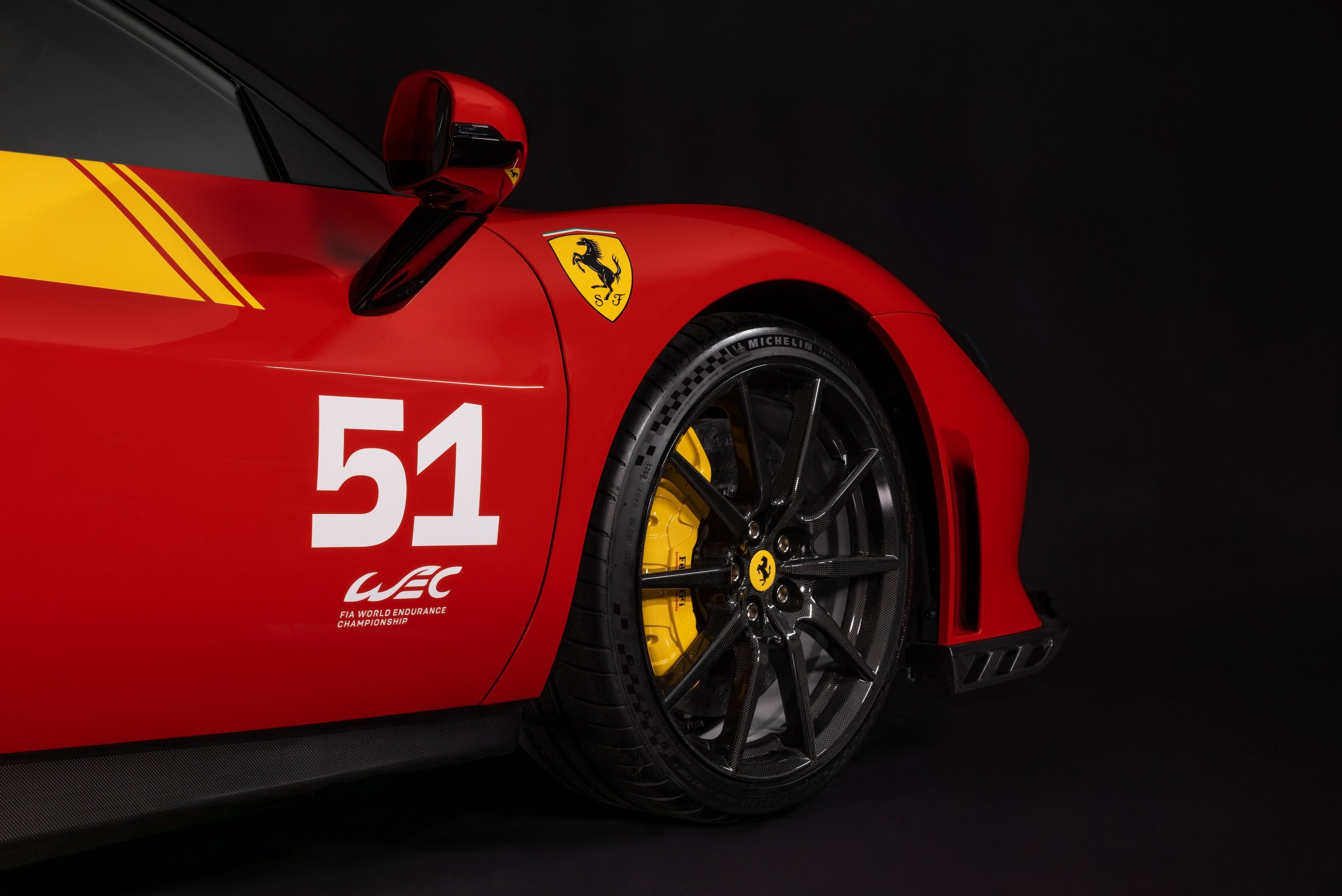 A kettős színvilág mellett kézzel festett WEC-logó, az olasz trikolor, valamint a vevő által szabadon megválasztható rajzszám díszíti a karosszériát. A világpremieren bemutatott autón az 53-as rajtszám szerepelt – annak a Ferrari versenyautónak volt ez a rajzszáma, amivel Alessandro Pier Guidi, James Calado és Antonio Giovinazzi 2023-ban megnyerték a Le Mans-i futamot.
