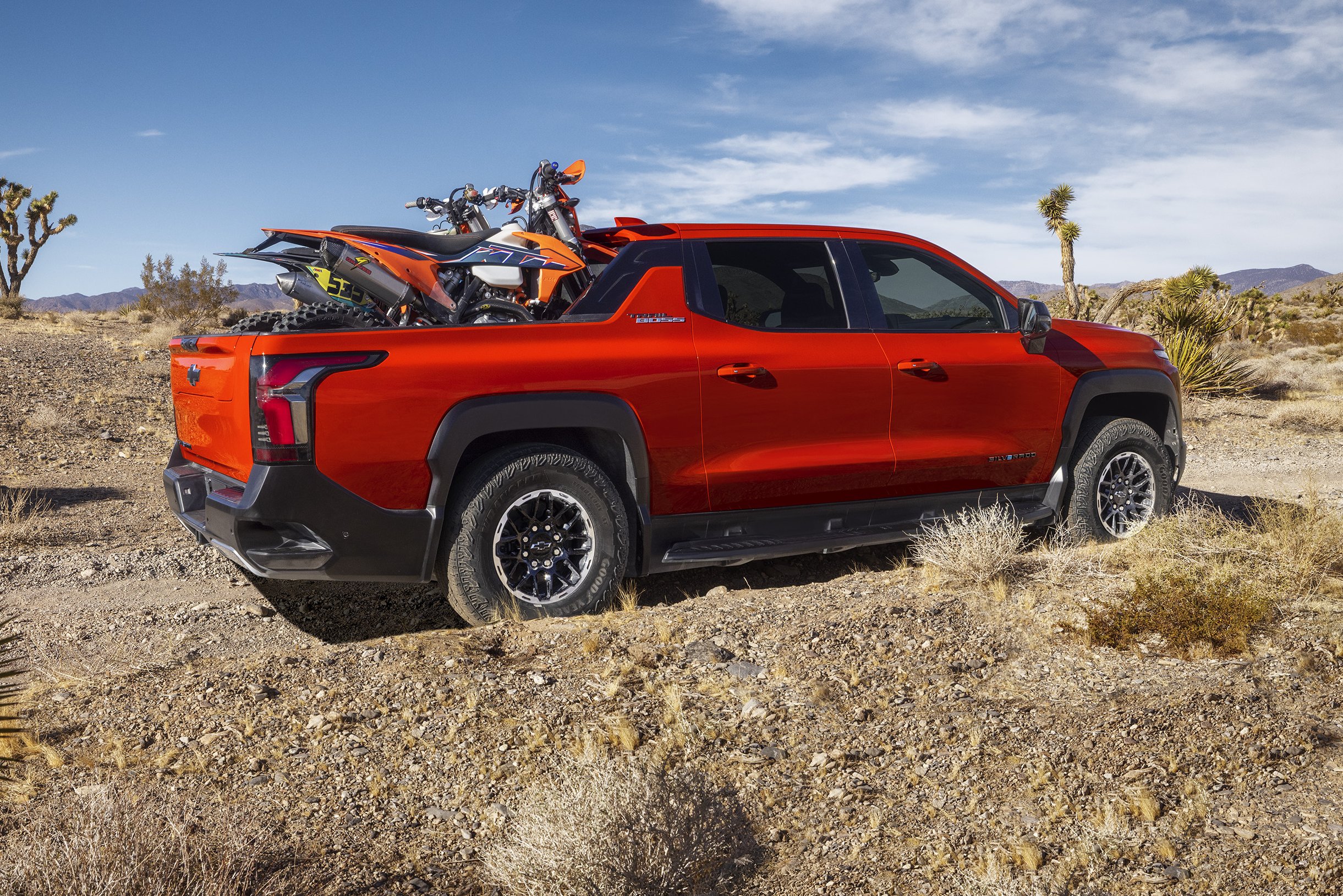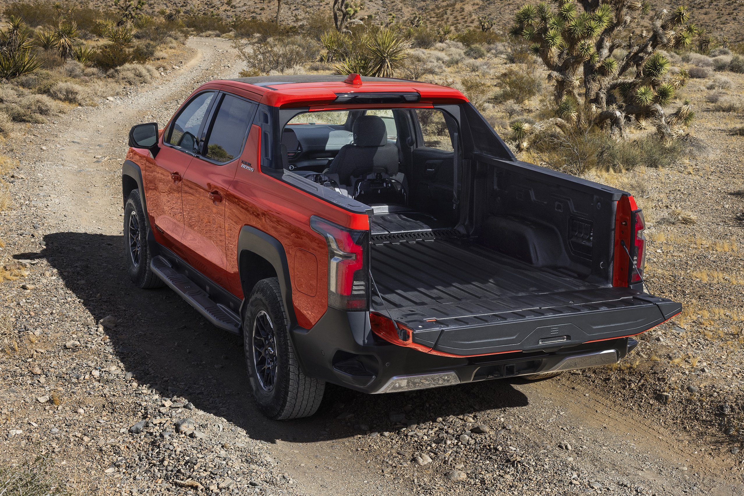 Képeinken a Chevrolet Silverado EV Trail Boss kivitel látható, amely 50 mm-es futóműemelésével és bütykös abroncsaival nem nevezhető a kínálat hatótávolság-bajnokának, viszont rettentő dögösen néz ki.