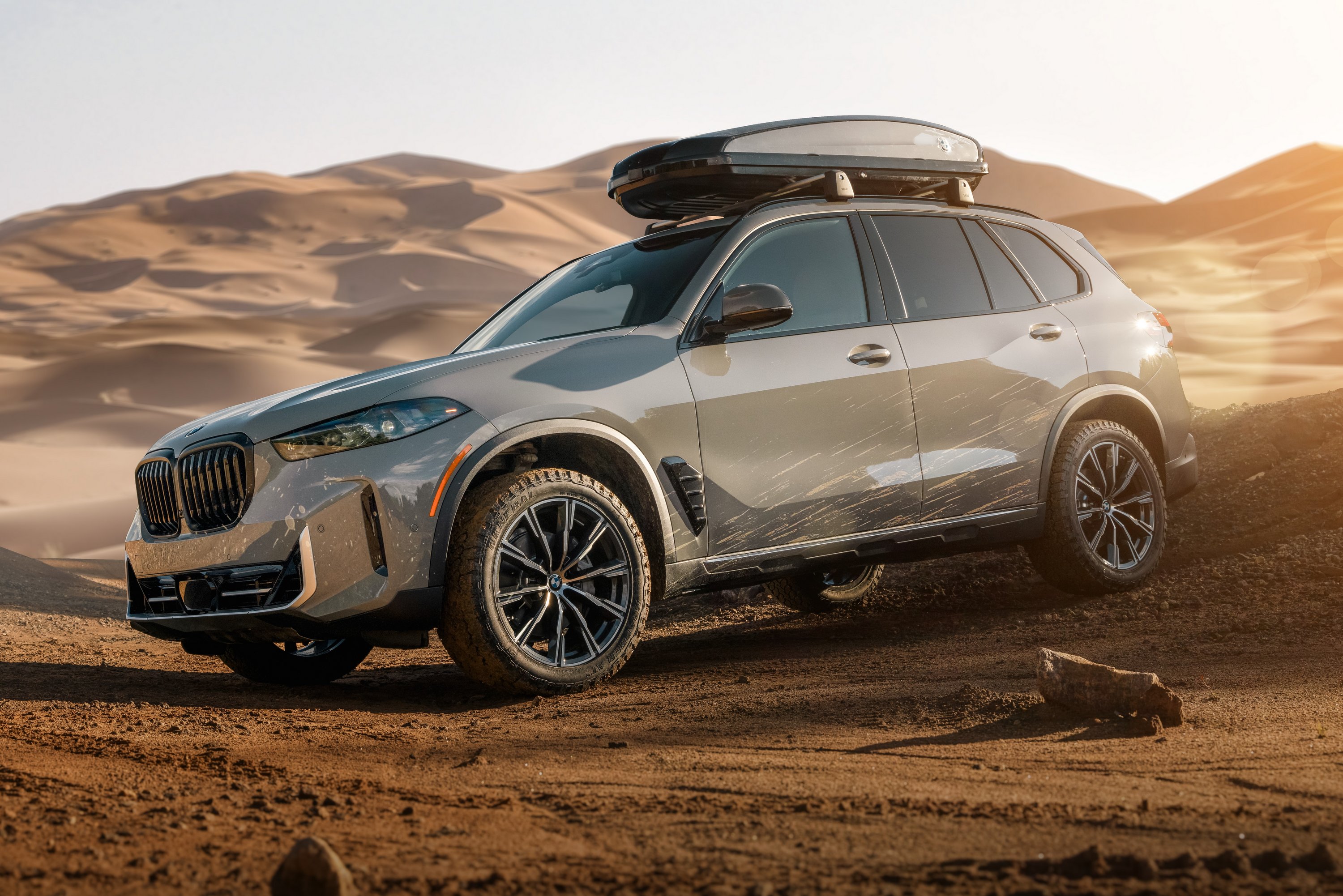 A BMW már korábban elkezdett terepes húrokat pengetni az xOffroad csomaggal, amely köré egy éve egészen komoly ajánlatot építettek fel: az X5 gyártásának huszonötödik évfordulójára kiadott, stílusosan ezüstlakodalmi kiadásnak (Silver Anniversary Edition – képeink többségén ez az autó látható) nevezett limitált széria légrugókkal, négyféle terep-üzemmóddal, mechanikus hátsó differenciálzárral és fenékvédő lemezekkel került forgalomba. A csomagból a szabad hasmagasságot, valamint hossz- és keresztirányú dőlésszögeket mutató terepműszerezettség, valamint a jármű környezetét figyelő kamerarendszer sem hiányzott, illetve jutányos felár ellenében vegyes használatú (terepre és aszfaltra egyaránt alkalmas) abroncsokat is lehetett vásárolni az autóhoz.