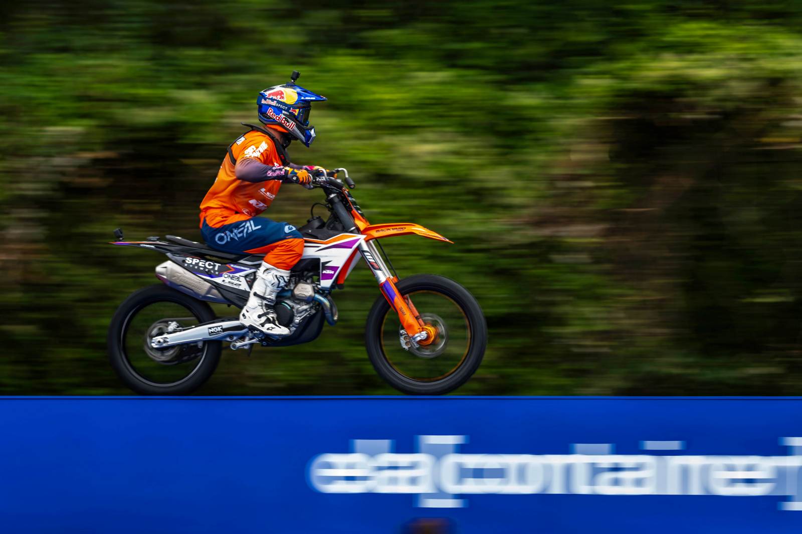 Ahhoz, hogy az elugrás és a leérkezés között „csont nélkül” sikerüljön a 9 méter magas „kapu” átrepülése is, tökéletes időzítése kellett, mindössze fél másodperces időablak állt rendelkezésre az induláshoz – a jelet a motoros testvére adta. A krosszmotor 54 km/órára gyorsított, azaz 74 km/órás sebességgel hagyta el az ugratót, majd 23 métert repült, a csúcspontnál 11 méter körüli magasságot elérve.