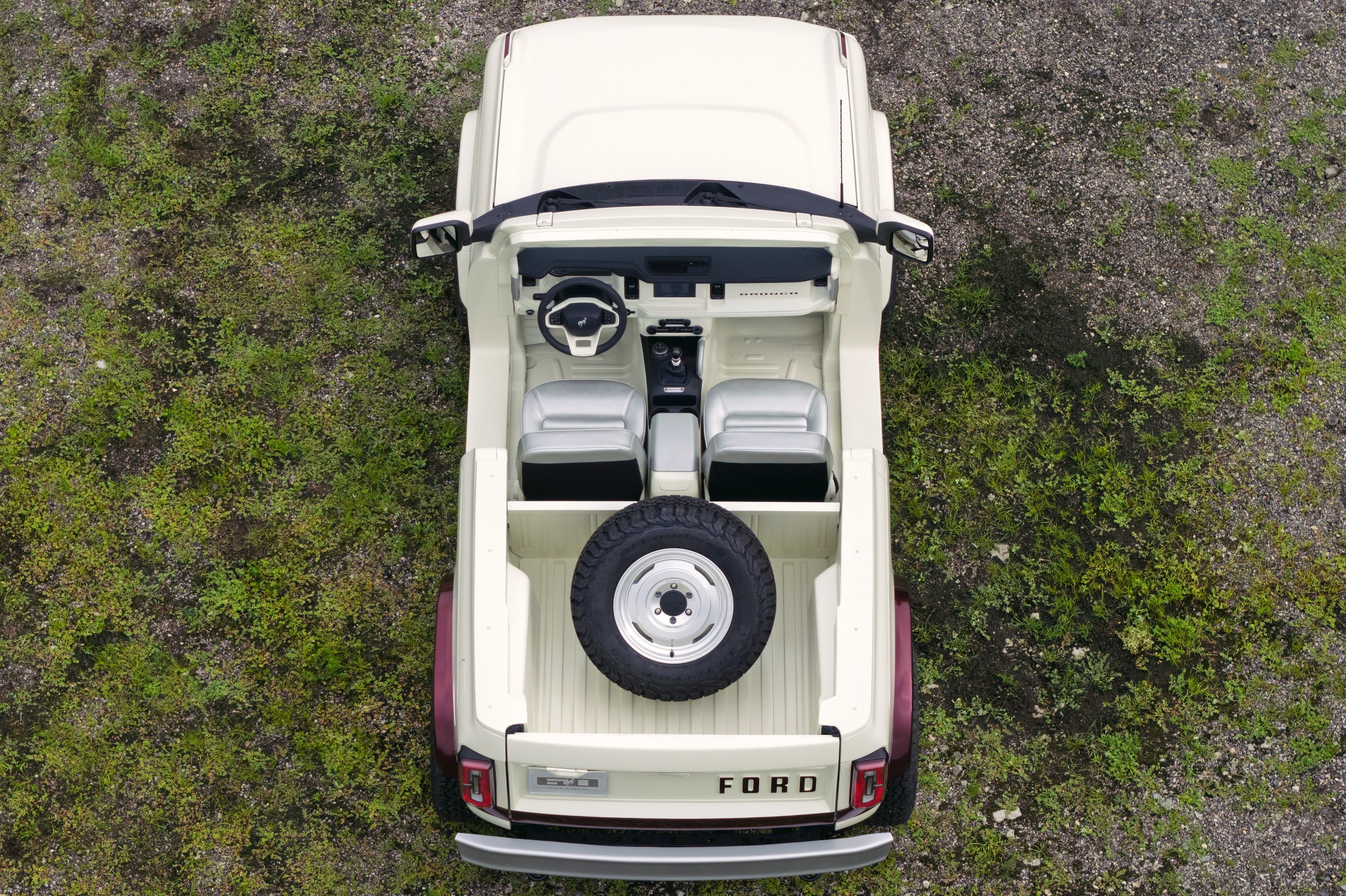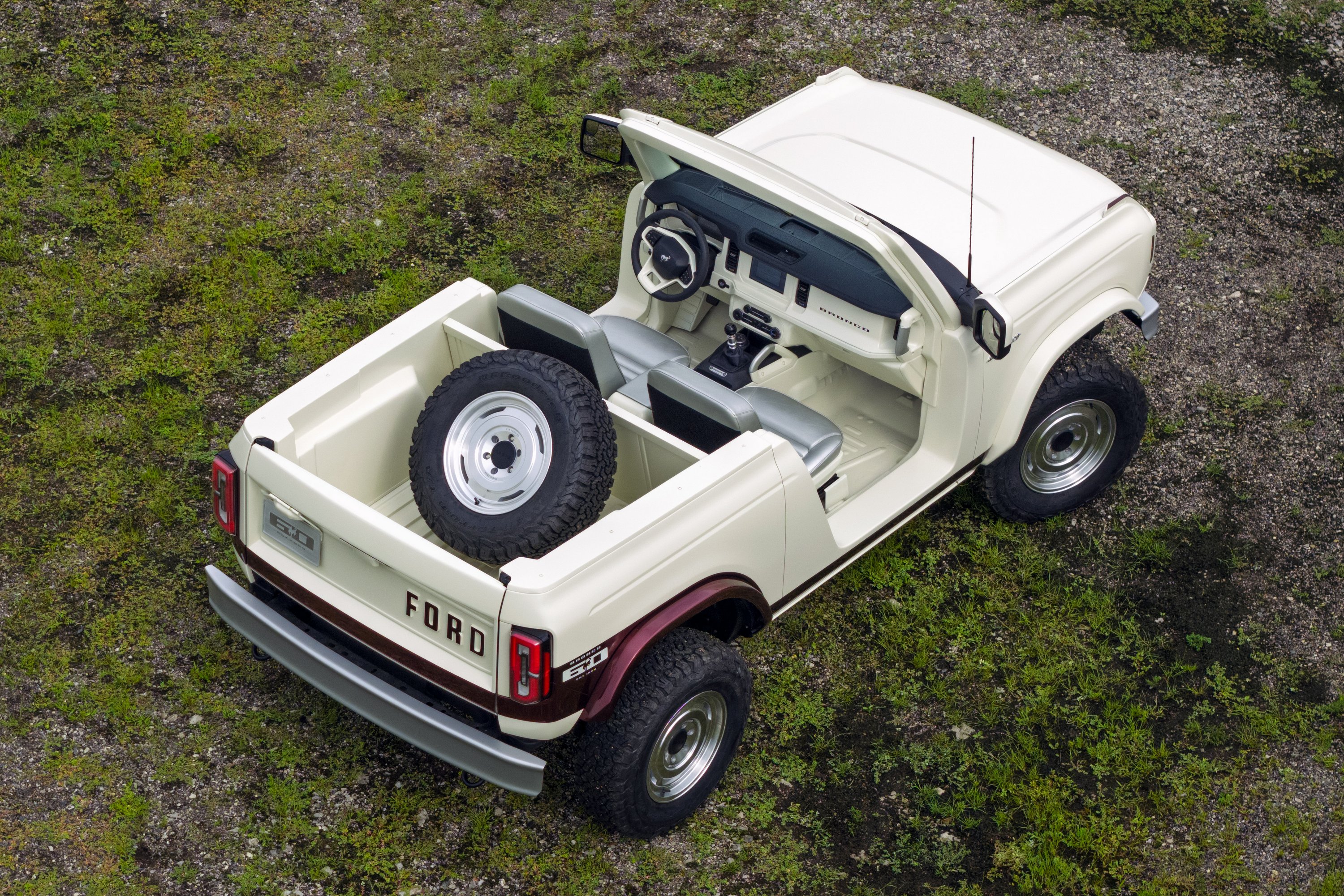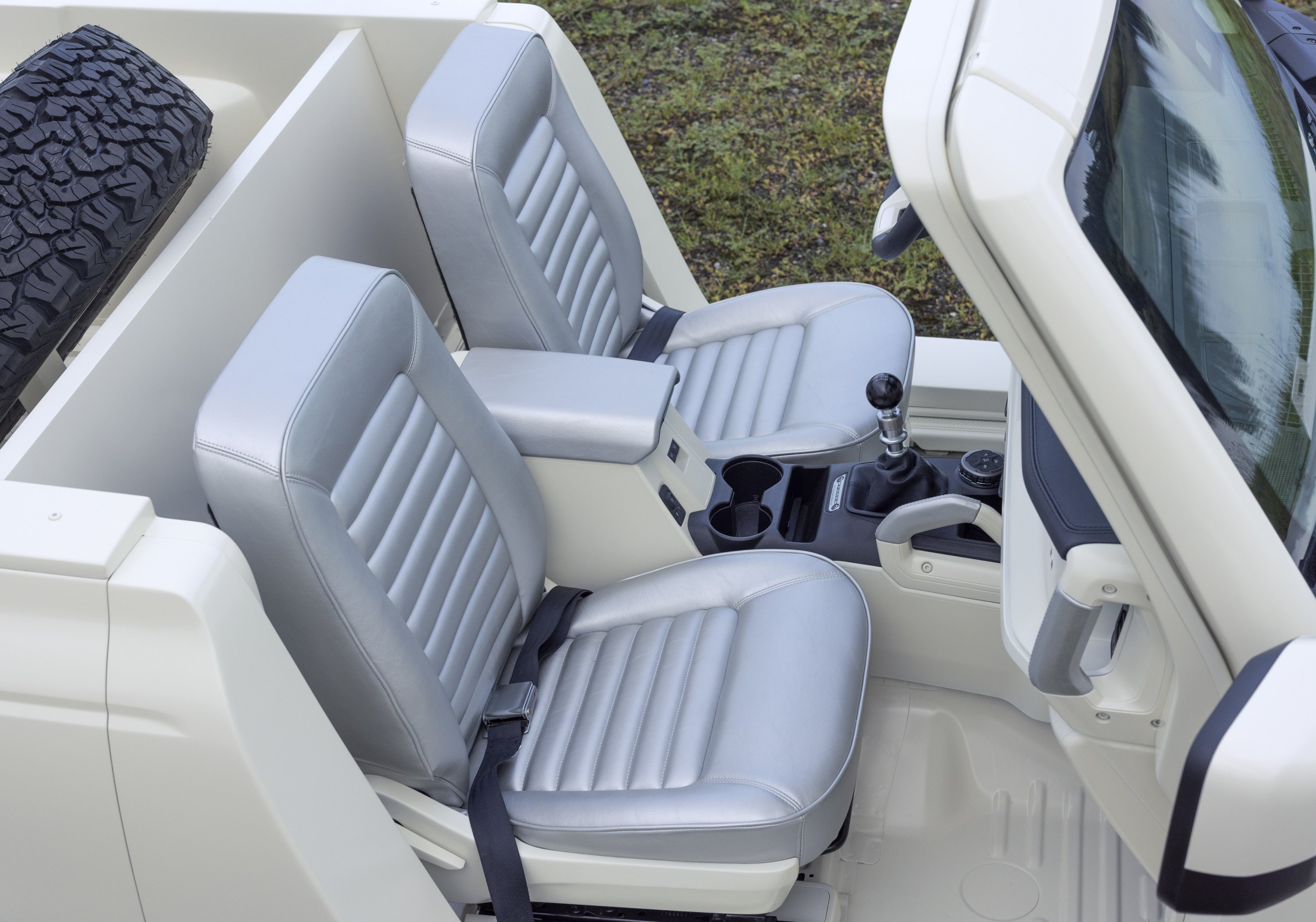 Mindenesetre a régi-új Bronco Roadster nem csak formailag, de funkcionálisan is az eredetit idézi. Nincs ajtó, nincs tető, nincs fejtámasz, és biztonsági övből is csak kétpontos került a kocsiba.