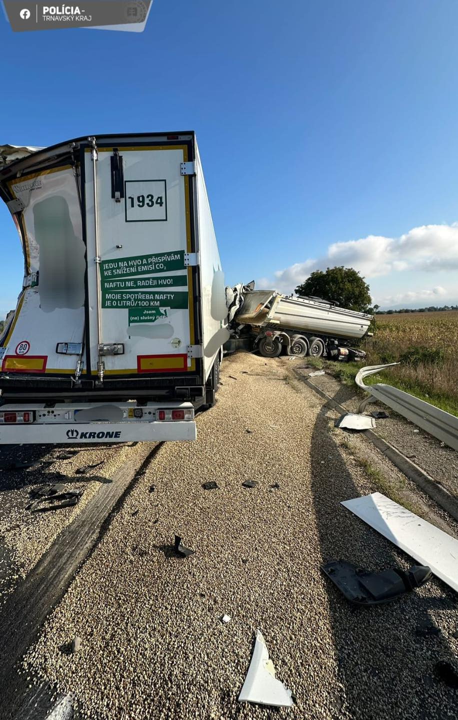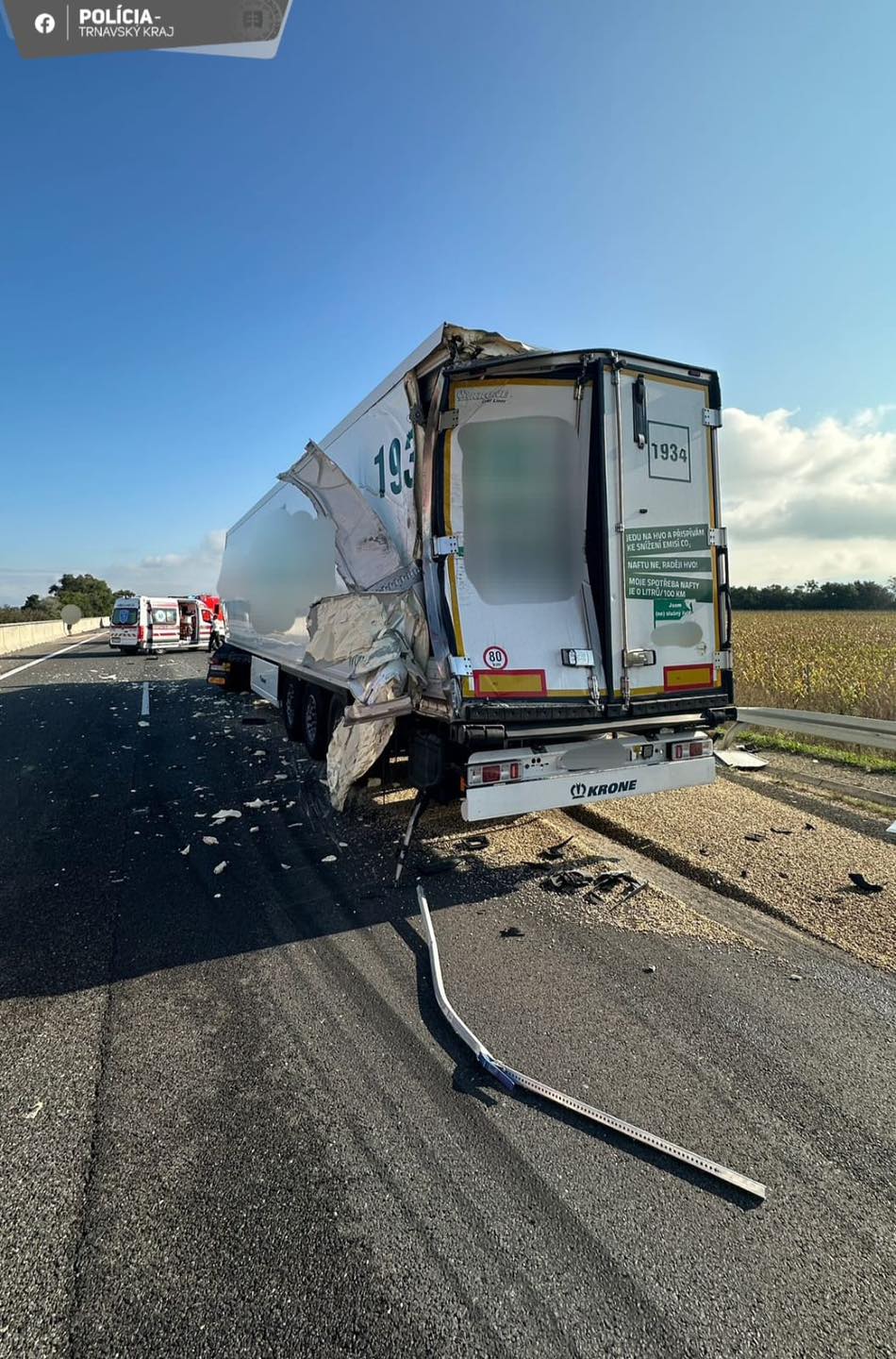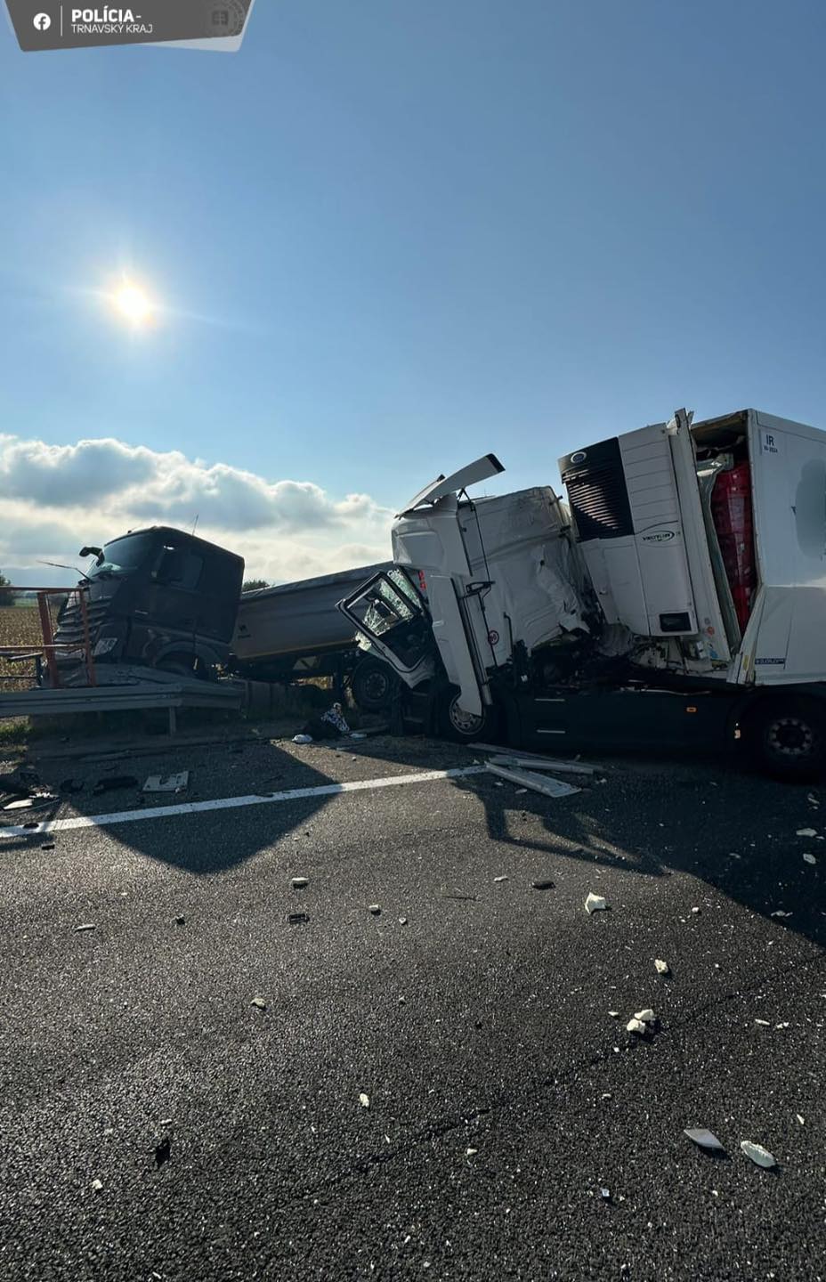 Három kamion ütközött össze a D1-es Pöstyén és Felsőszerdahely közötti szakaszán. A baleset úgy kezdődött, hogy az első kamion sofőrje műszaki hiba miatt kénytelen volt megállni a leállósávban, és egy másik kamion belerohant hátulról az álló járműbe – azt egyelőre nem tudni, miért.