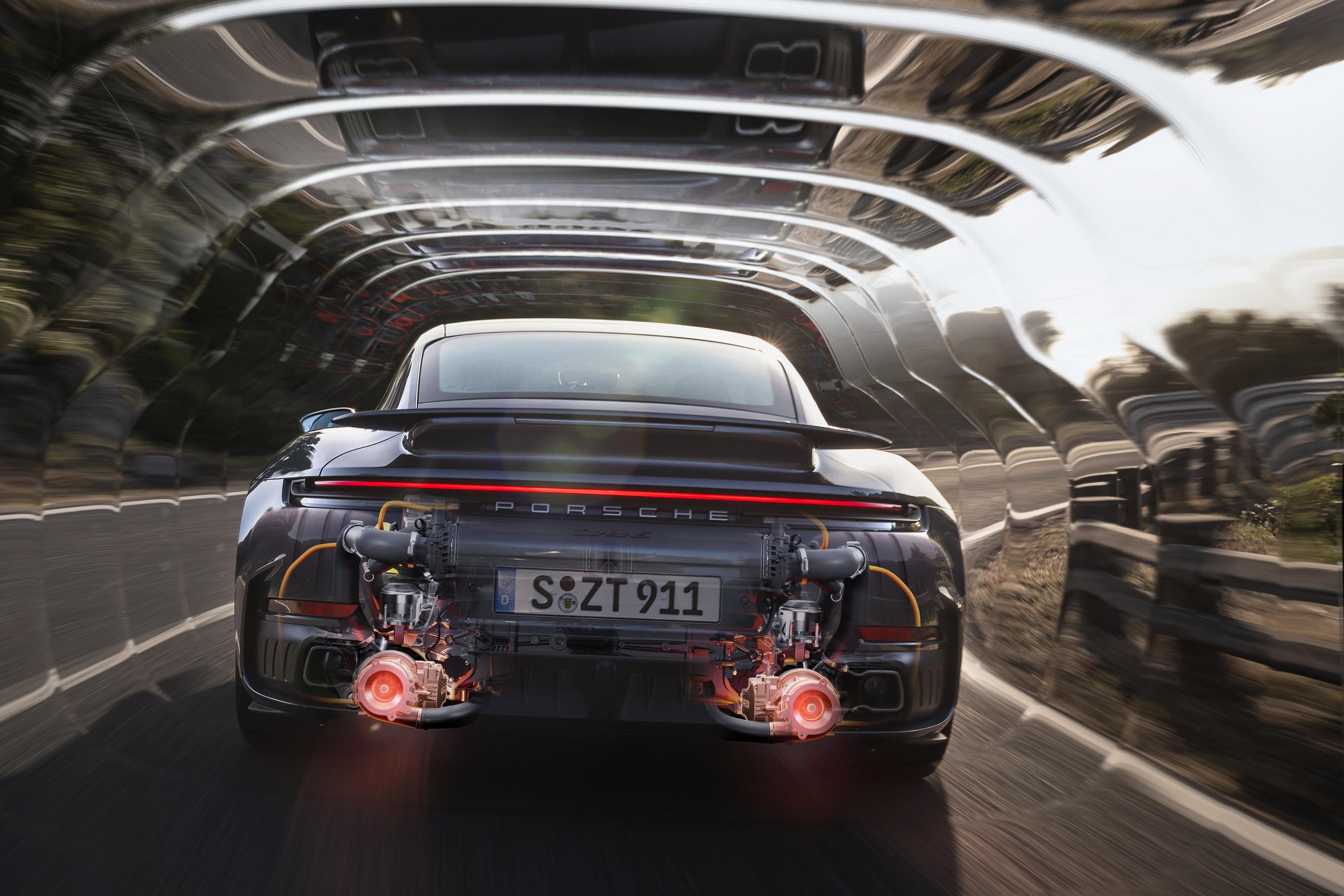 A hajtáslánchoz az alapot a 911 GTS hibrid hajtáslánca adta, magától értetődően feljavított formában. Egy helyett kettő elektromos turbófeltöltőt alkalmaztak, egyedi specifikációk szerint kialakított turbina- és kompresszorkerékkel. Az előző Turbo S-nél 61 lóerővel nagyobb, 711 lóerős csúcsteljesítmény 6500 és 7000/perc között érhető el, a 800 Nm-es nyomatéki csúcs ennél is szélesebb fordulatszám-tartományban, 2300 és 6000/perc között áll rendelkezésre.