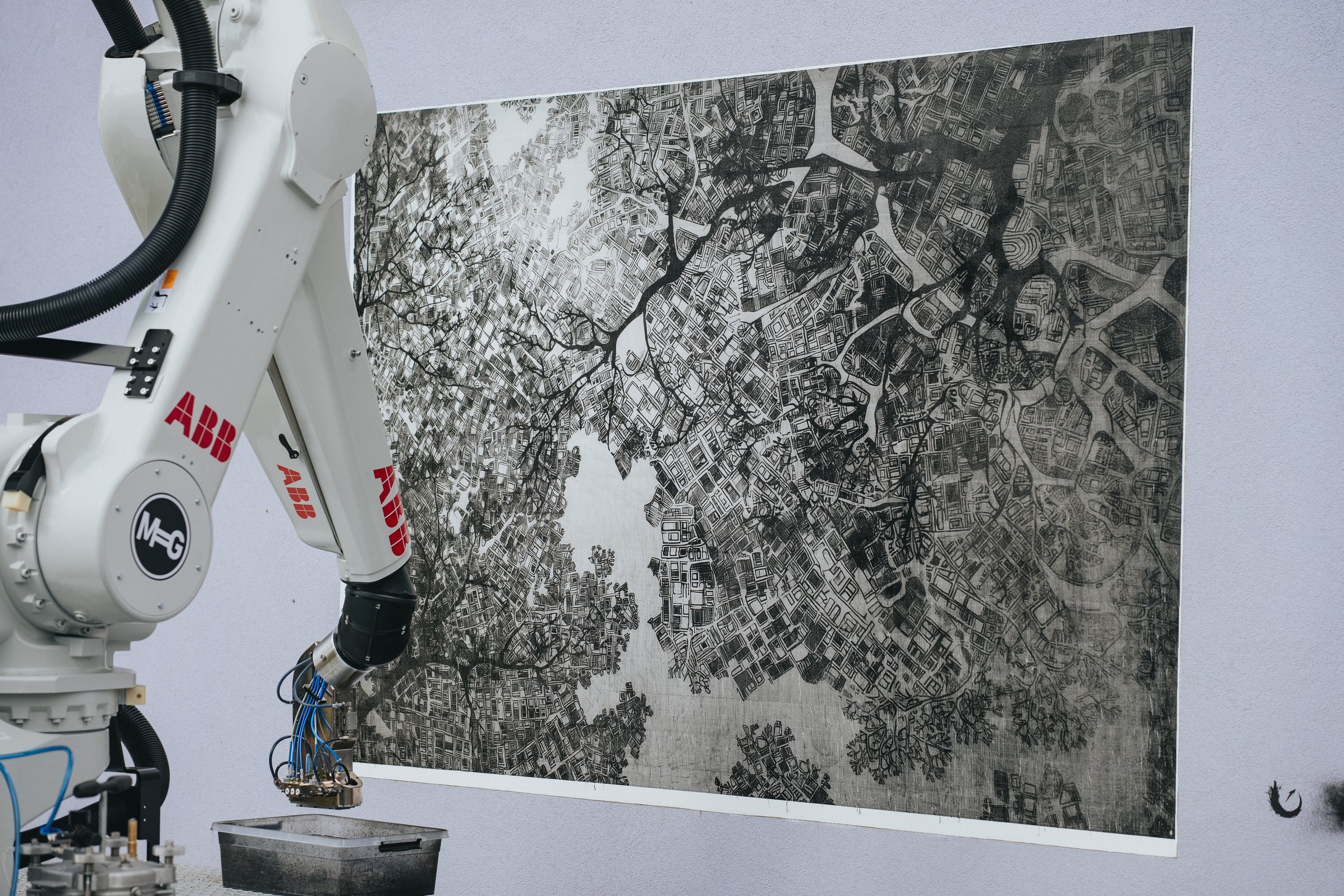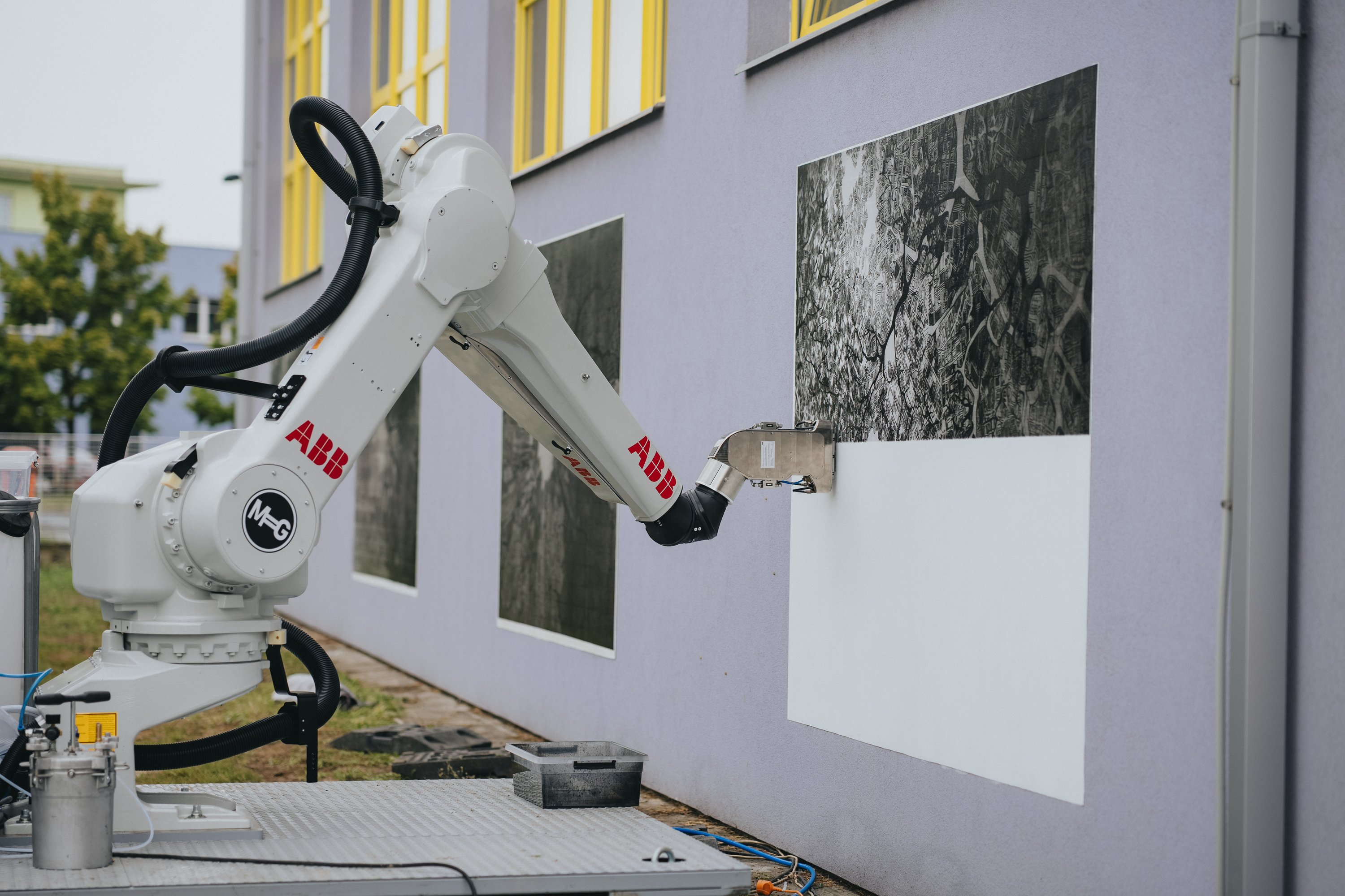 A Škoda szülővárosában egy közterületi képzőművészeti fesztivál keretében most bárki megcsodálhatta az IRB 5500 típusú fényezőrobot mesteri képességeit: mesterséges intelligencia által tervezett grafikákat tápláltak bele a vezérlésébe, a mintákat a közönségtől kapott javaslatok alapján állította össze a gépagy.
