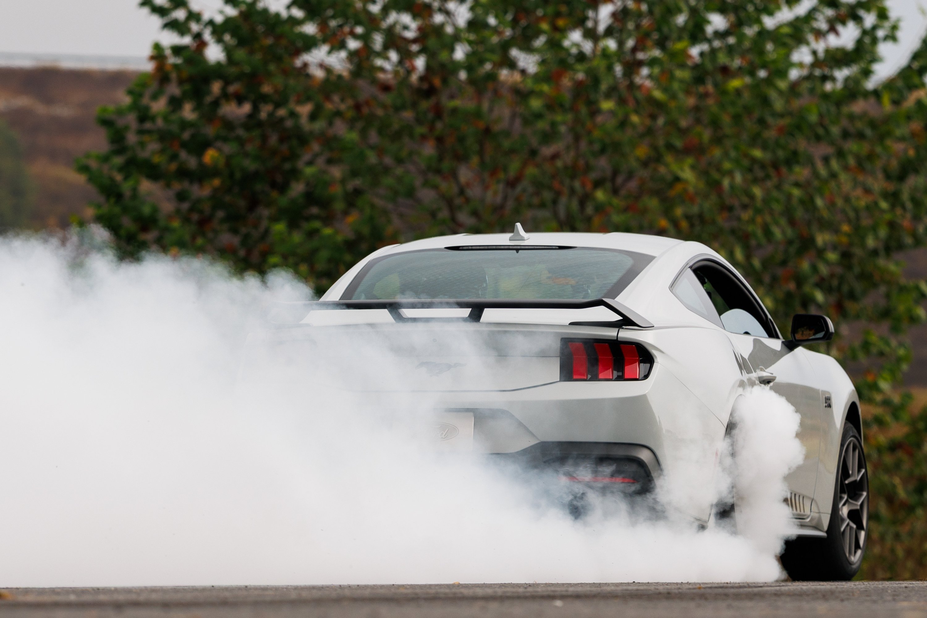 És akkor a lényeg: a futóművet a Mustang Dark Horse és a Mustang GT modellekből válogatták össze. Az előbbiből jön az első rugóstagok állítható bekötése, a sportos első és hátsó kanyarstabilizátorok, valamint a merevebb hátsó segédváz. A GT öröksége a módosított kormánymű, a nagy teljesítményű hűtőventilátor és a Brembo fékcsomag.