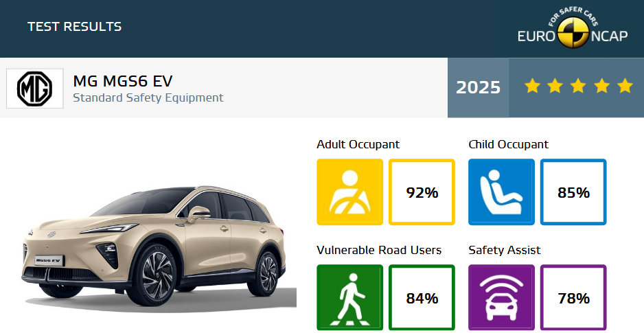 Az MGS6 EV az elérhető legjobb minősítést szerezte meg az Euro NCAP tesztjén, nem is akárhogyan.