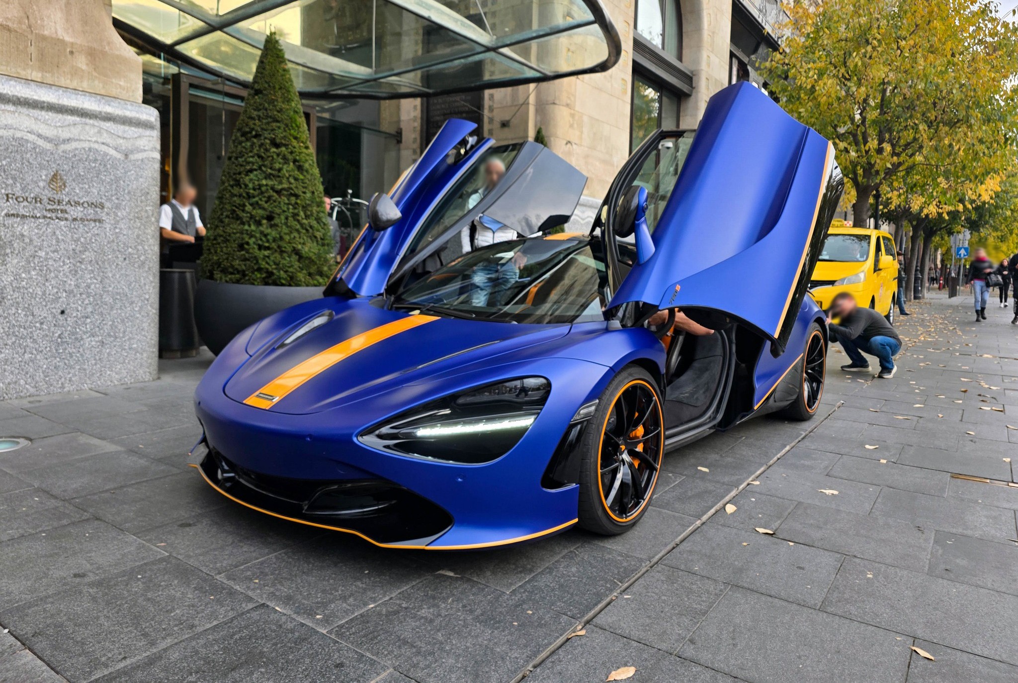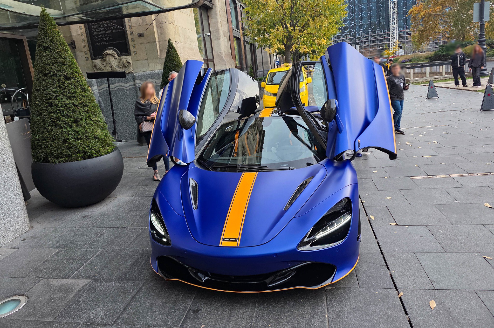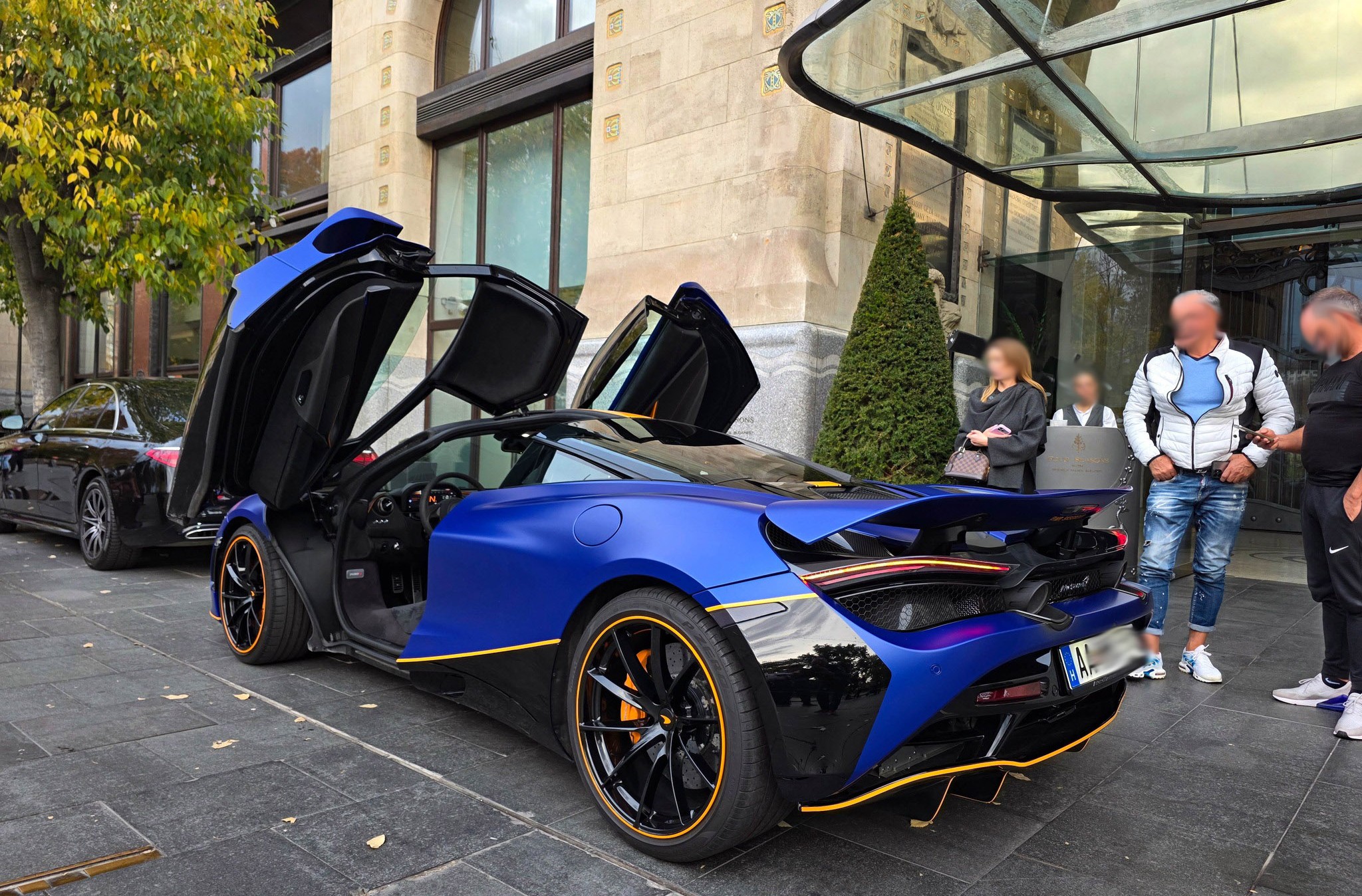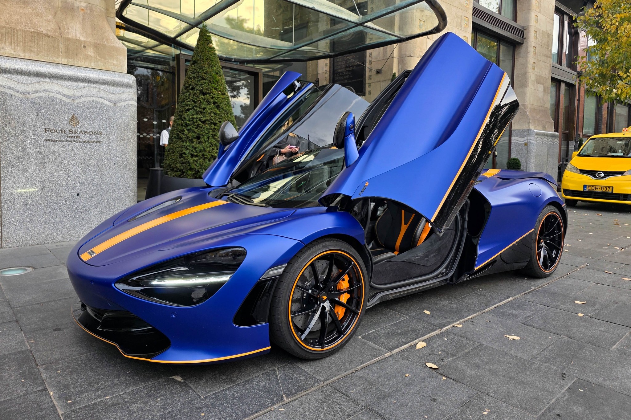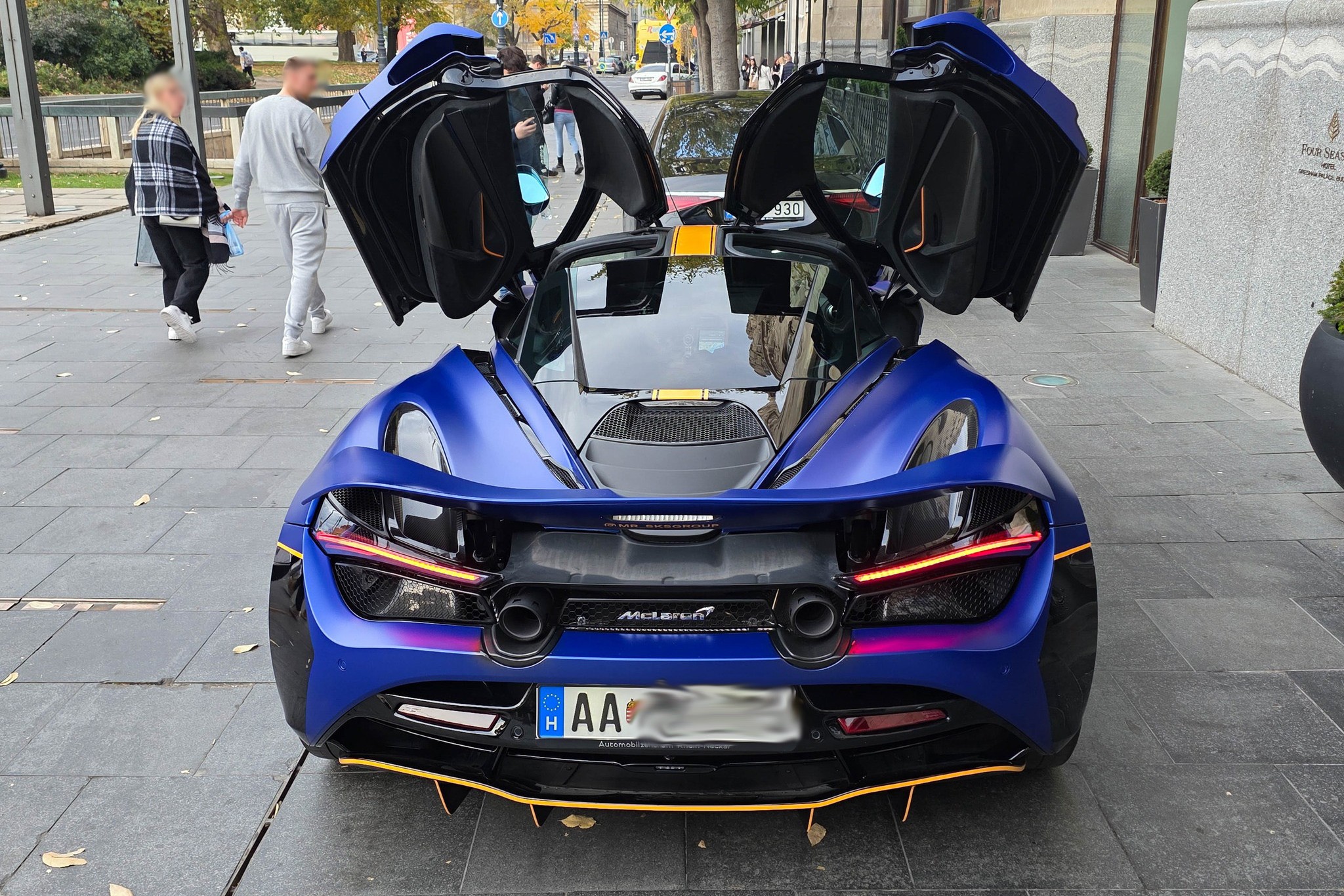 Néhány fiatal “autószpotter” osztotta meg közösségi oldalán a fotókat az igazán különleges színű McLaren 720S-ről. Az autó kék (Aurora Blue), matt fényezését sárga (McLaren Orange) betétek díszítik, amely a felni peremén és a fékeken is visszaköszön.