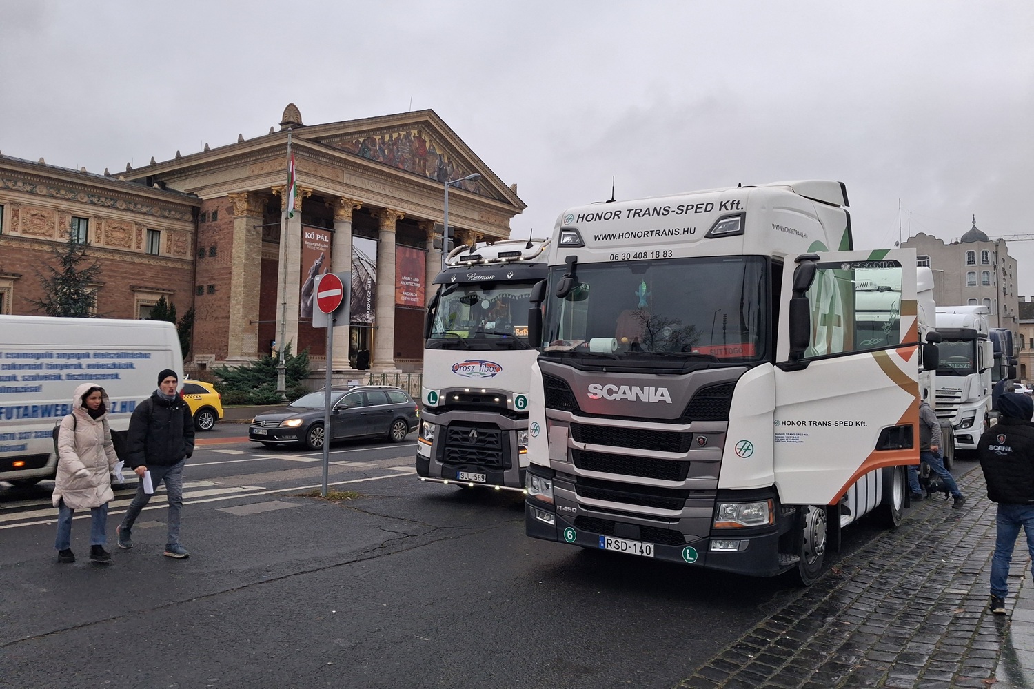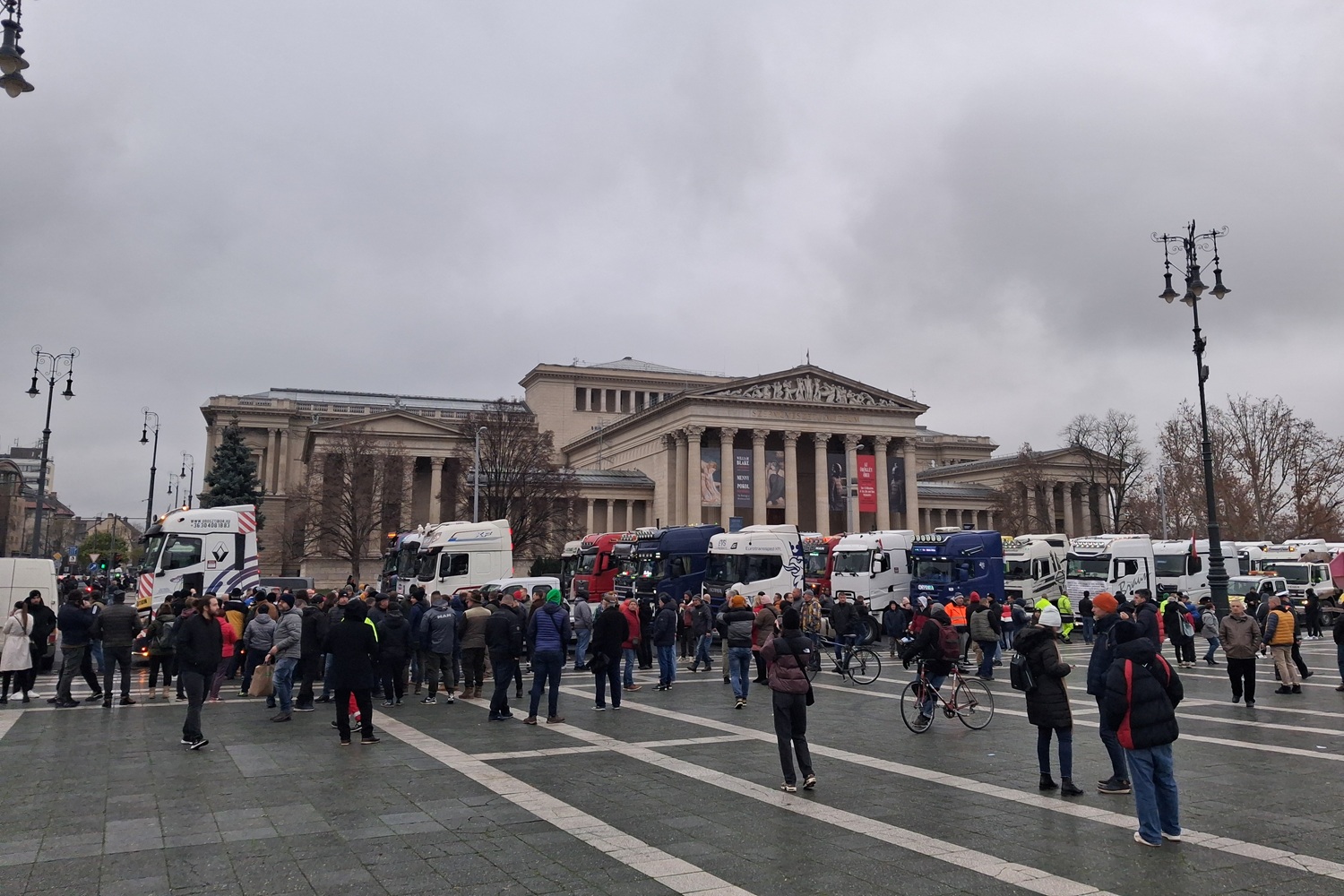 Több tucat nyerges vontató parkolt le a Hősök terén hétfőn 14 és 15 óra között. Ezzel kezdetét vette a „kamionos demonstrációként”, illetve „fuvarozói demonstrációként” meghirdetett tiltakozás, amelynek egyik legfontosabb célja, hogy elérjék az útdíjemelés visszavonását. (A többi pont lentebb megtekinthető.)