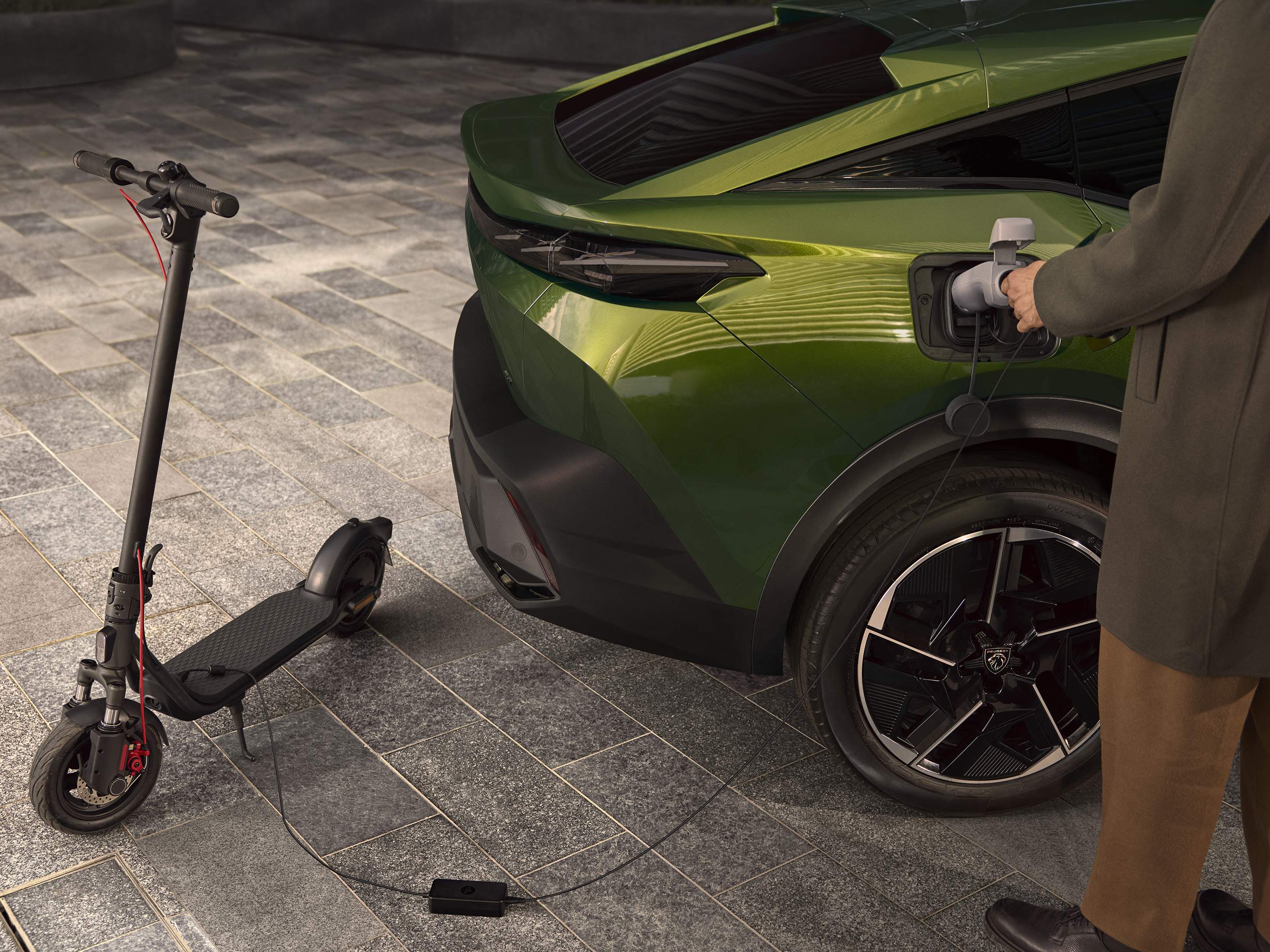 Fontos új szolgáltatások jelentek viszont meg az elektromos modellen. Ilyen az akkumulátor-előkondicionálás, amely a töltés pillanatára optimális értékre állítja be az akku hőmérsékletét; a funkció kapcsolható manuálisan vagy automatikusan, a navigációs útvonaladatok alapján. Szintén új a V2L előkészítés: ha megvesszük a külön kapható adaptert, a Peugeot e-408 akkumulátorát sztenderd áramforrásként használhatjuk, a maximális teljesítmény 3500 W, a legnagyobb áramerősség 16 amper.