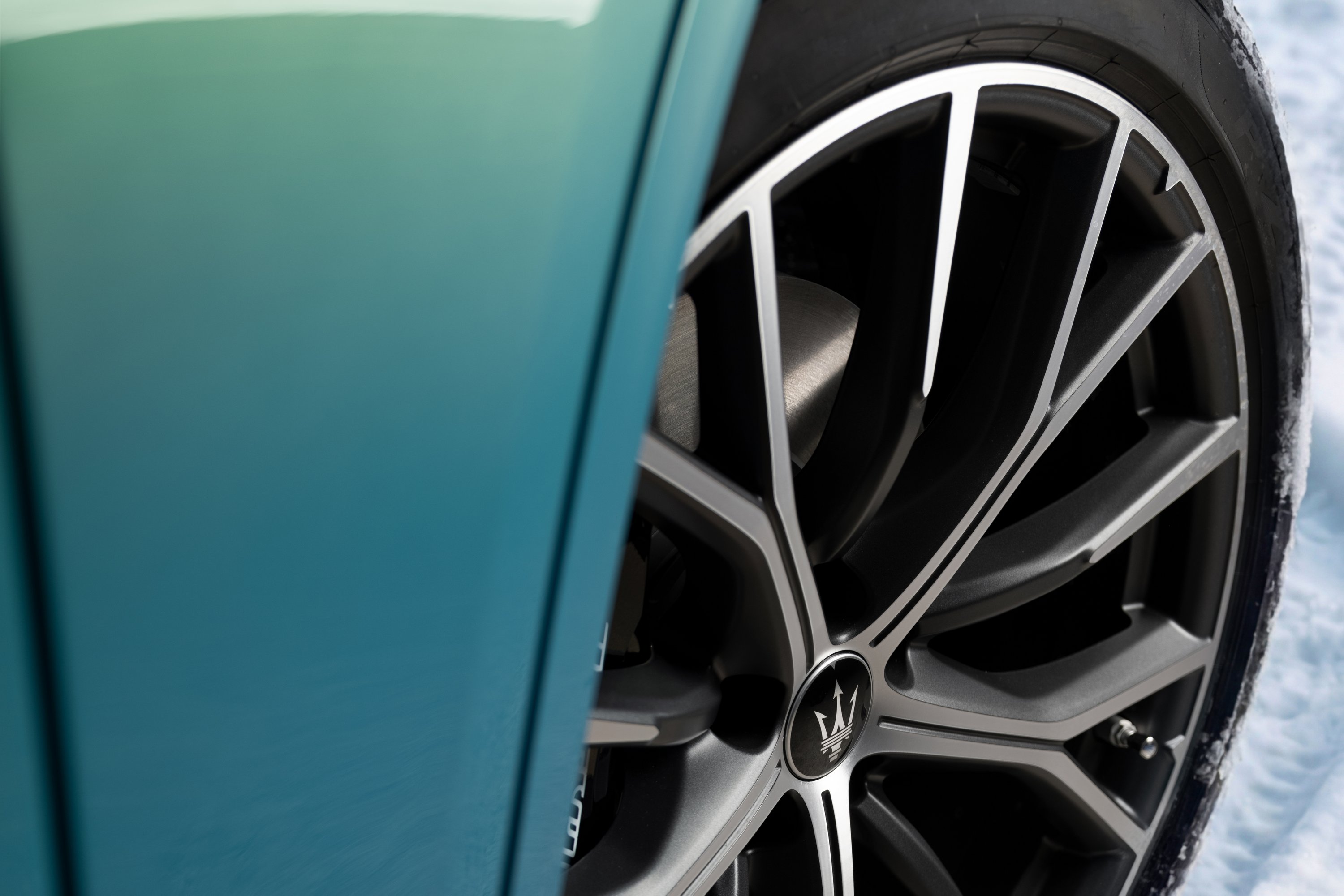 Ez a bizonyos szín az Azzurro Aureo, egy frissen kikevert Fuoriserie (azaz egyedi) árnyalat, amiről egy külön embléma tanúskodik a kerékdobon. A szín a Maserati emblematikus kékjének egy hűvösebb, tisztább, világosabb módozata, amelyet arany mica adalékkal tettek különlegessé, ragyogóvá.