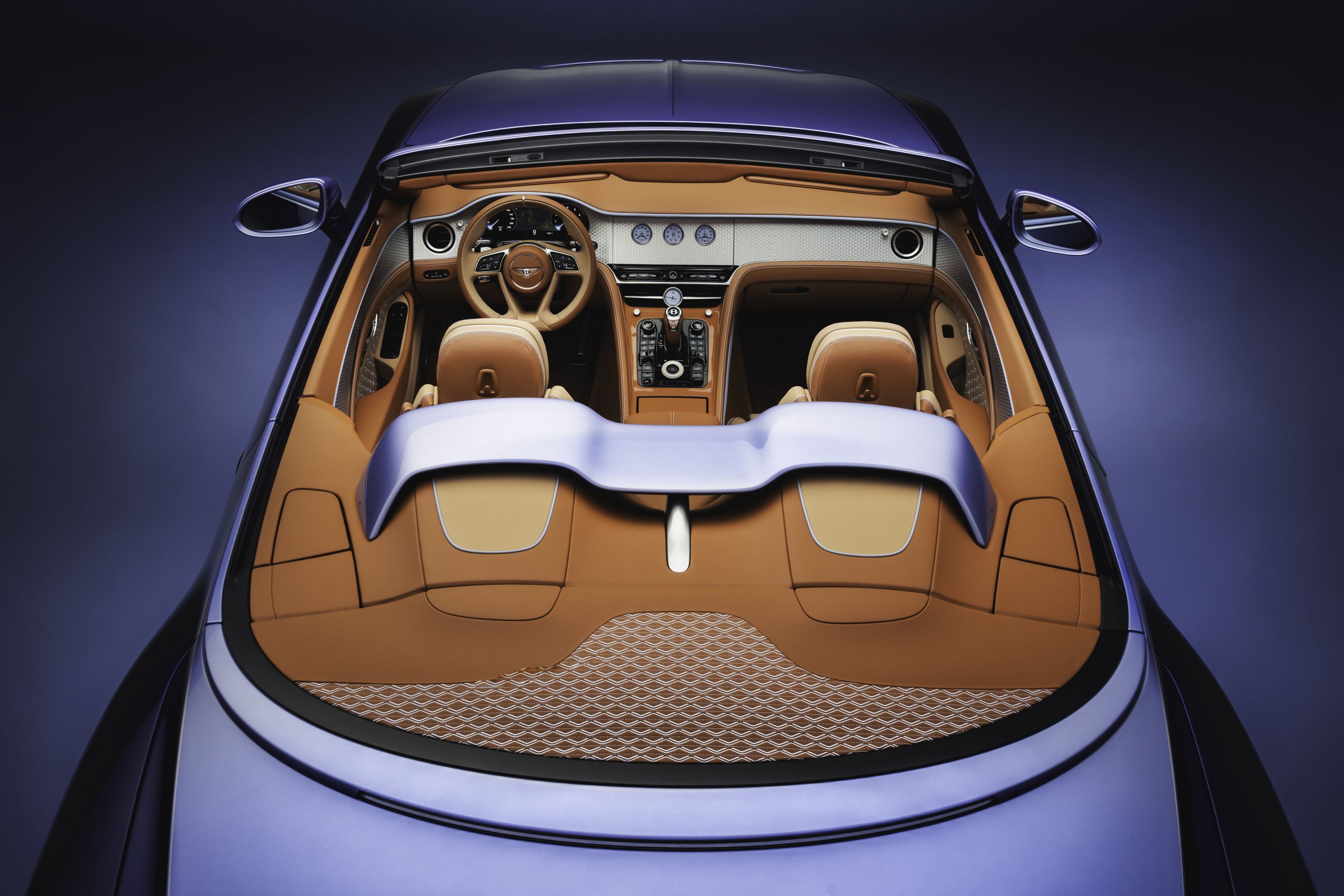 Ami megdöbbentő, hogy a vászontető szintén Breslow Blue színű: ez a második előzmények nélküli megoldás. Egy ilyen harmonizáció nagyságrendekkel bonyolultabb, hosszadalmasabb és drágább folyamatot feltételez, mint egy egyedi karosszériaszín kikeverése, hiszen a textilfestéket kellett úgy belőni, hogy a végeredmény pontosan illeszkedjen a motorház- és csomagtérfedél színéhez. A kontrasztos részletek Midnight Breslow Blue árnyalatúak.