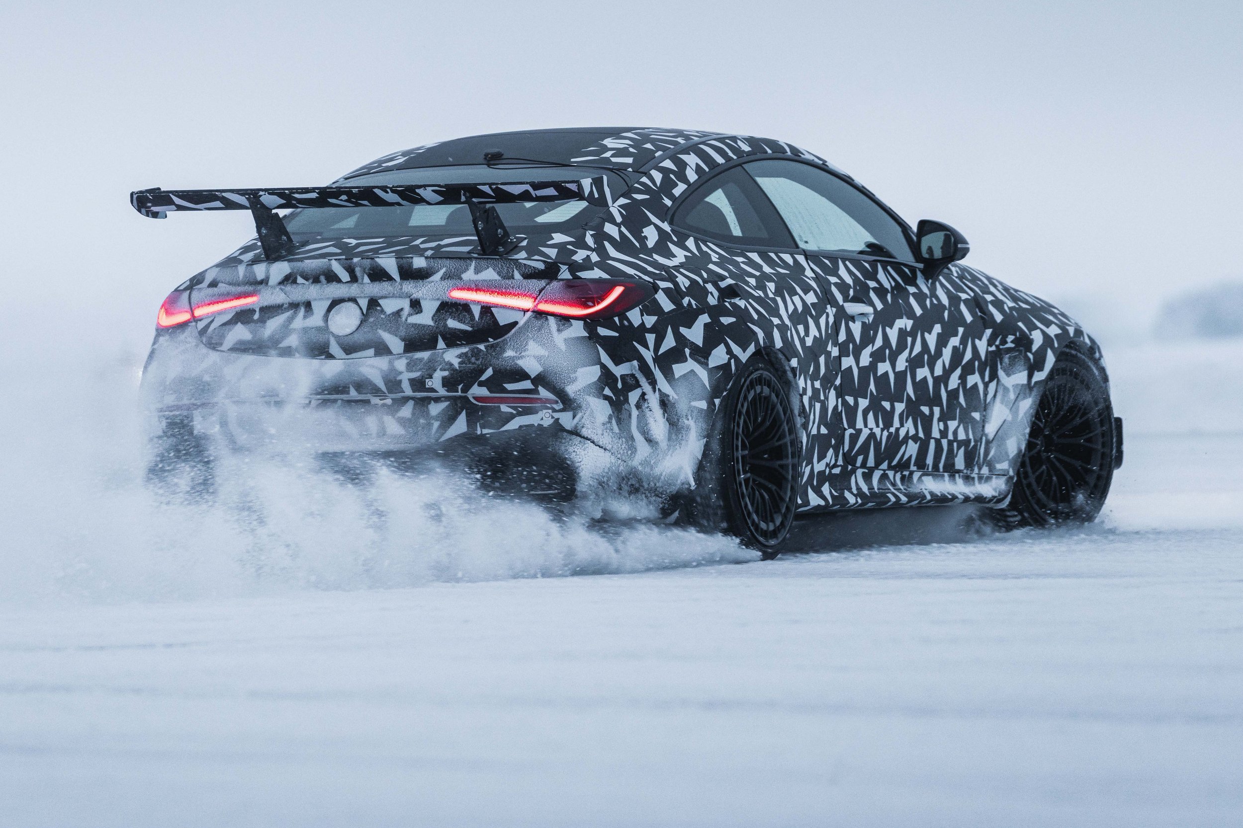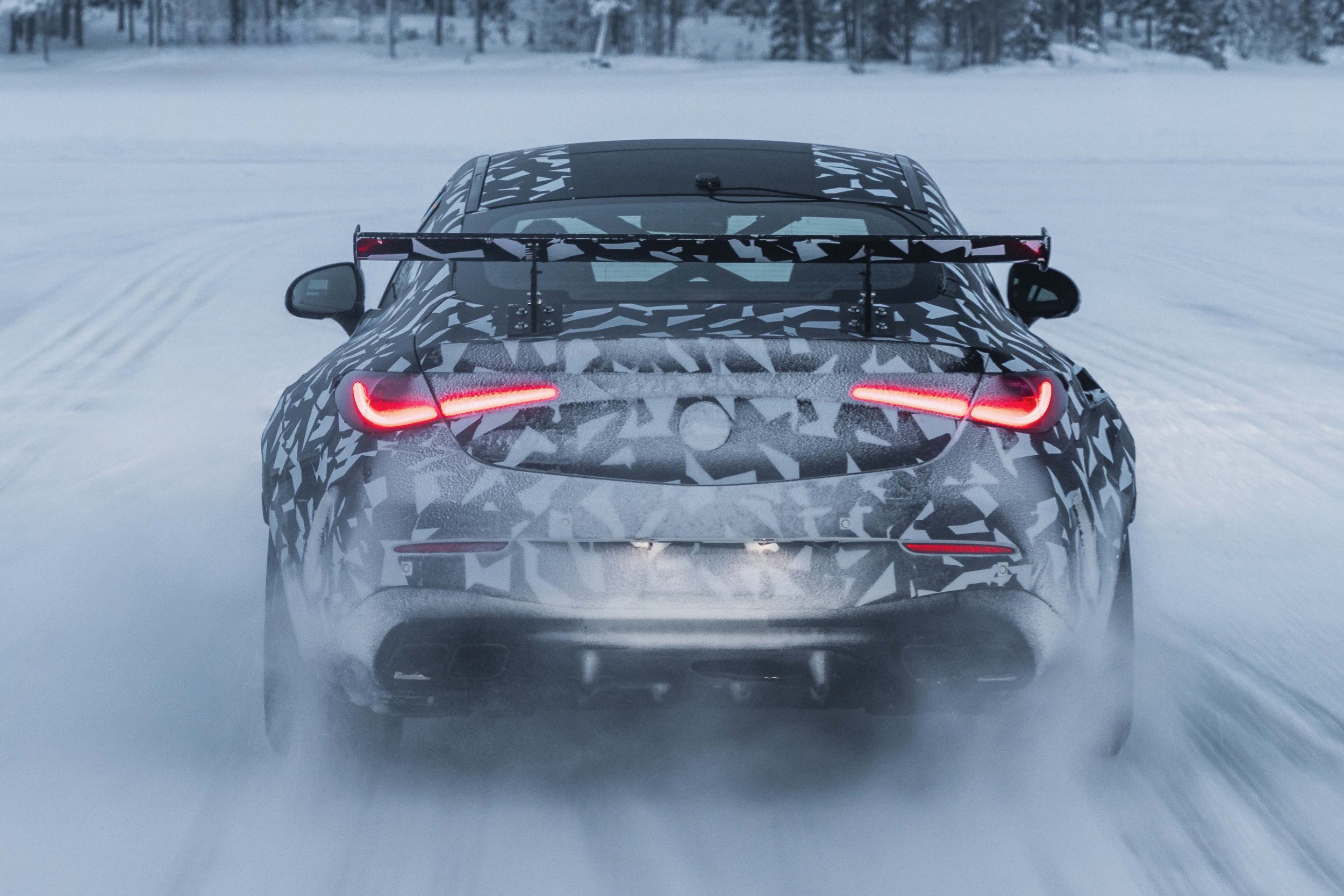 A Mercedes-Benz CLE Coupé alapjain nyugvó prototípus sarkköri tesztjeiről készített fényképeket tett közzé az AMG. A középkategóriás kétajtósból korábban már készült AMG-átirat, az itt látható fejlesztési példány azonban sokkal inkább versenyautó, mint közúti sportkupé: erre enged következtetni a kiszélesített első lökhárítót teljes szélességében kitöltő, hatalmas légbeömlő és a csomagtérfedélre felcsavarozott konzolokra emelt hátsó légterelő.