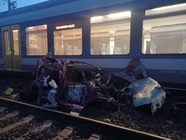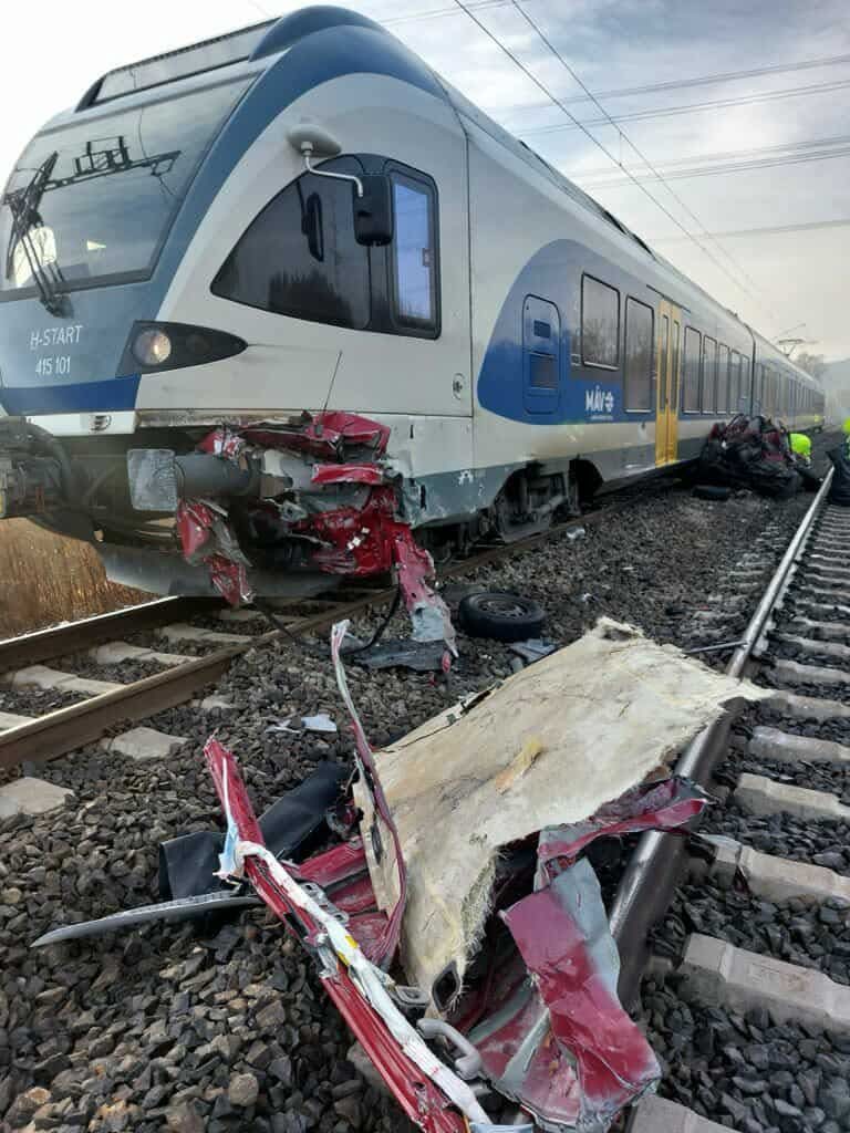Az érkező -utasokat nem szállító – vonat 60 km/órával sodorta el a gépkocsit, átdobta a másik vágányra, ahonnan szintén érkezett egy szerelvény.