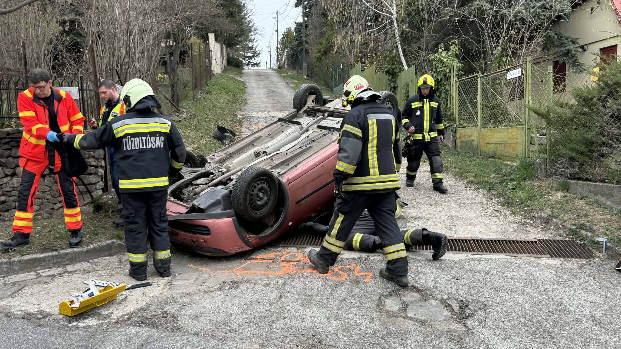 Leányfalu egy központi részén, egy lejtős utcában állt fejre egy autós pénteken. A balesethez a szentendrei hivatásos tűzoltók, valamint a Leányfalu Vöröskő Önkéntes Tűzoltó Egyesület tűzoltói vonultak ki, akik áramtalanították az Opel Corsát. Ezt követően „talpra állították” a sérült autót. Az esethez – amelynél rendőrségi helyszínelésre is szükség volt – trélert kellett hívni, hiszen az autó ebben a formában már nem volt közlekedésre alkalmas, ezért azt elszállították a a helyszínről.