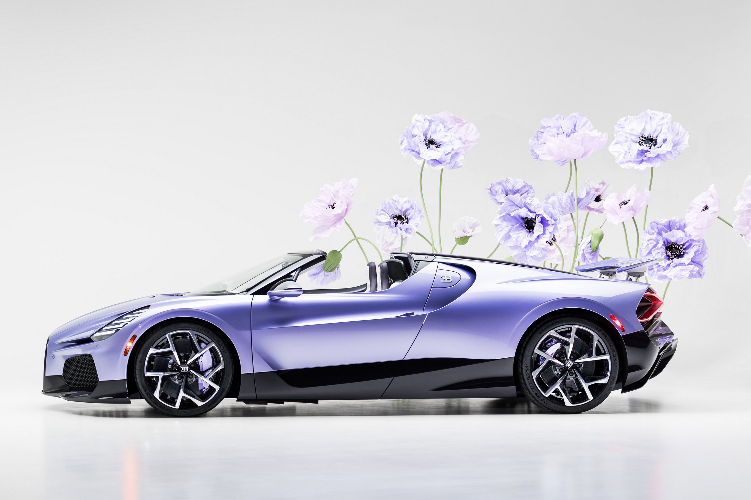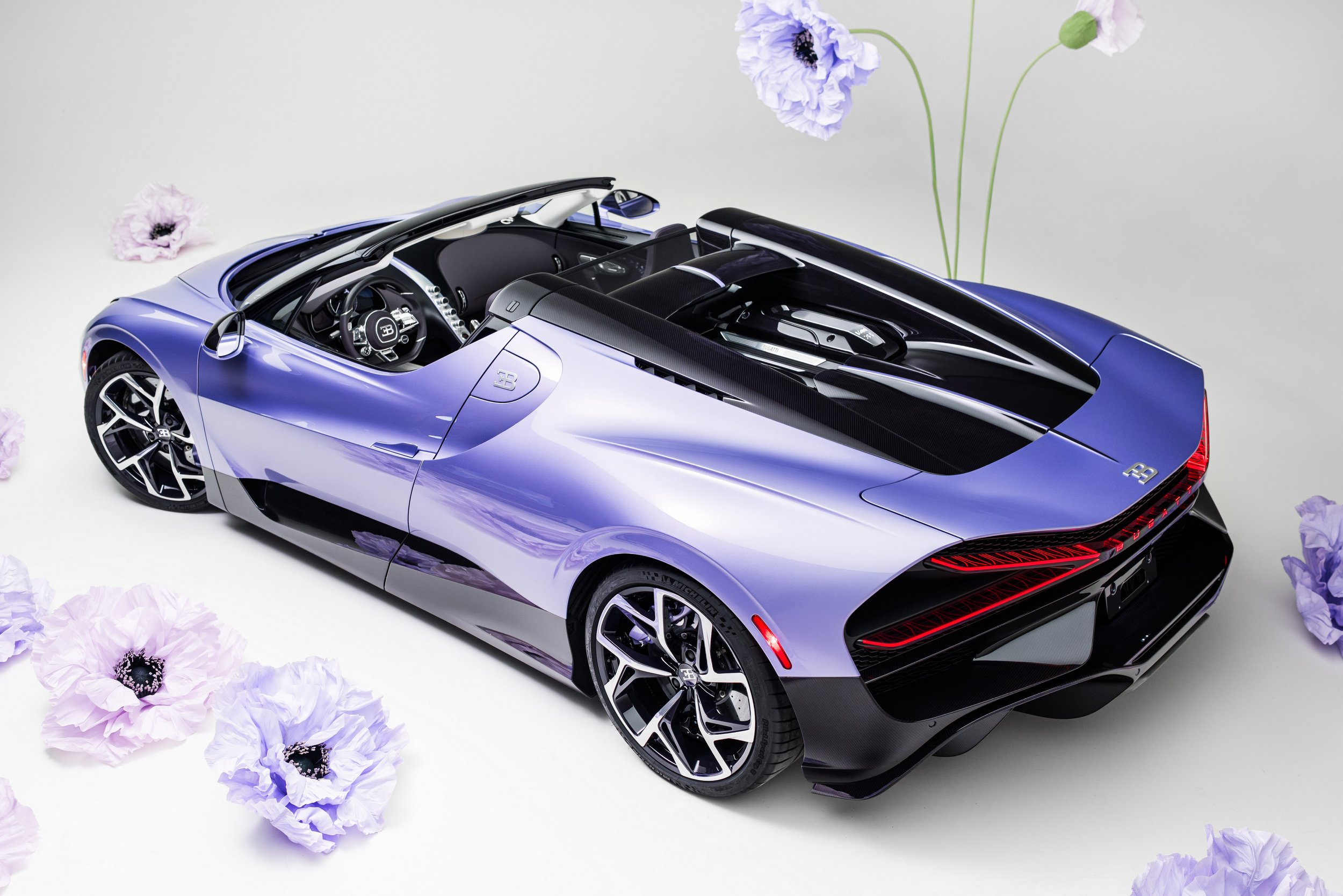 Ezért aztán emberünk, akinek immár sokadik autóját vásárolta a Bugattitól, úgy döntött, máshogy kedveskedik virágkedvelő lányának, Caroline-nak, és inkább hímzett formában boríttatta lila szirmokba az alapáron ötmillió euróba, azaz 2 milliárd forintba kerülő (plusz adók, plusz az egyedi kívánságok) kabrió utasterét.