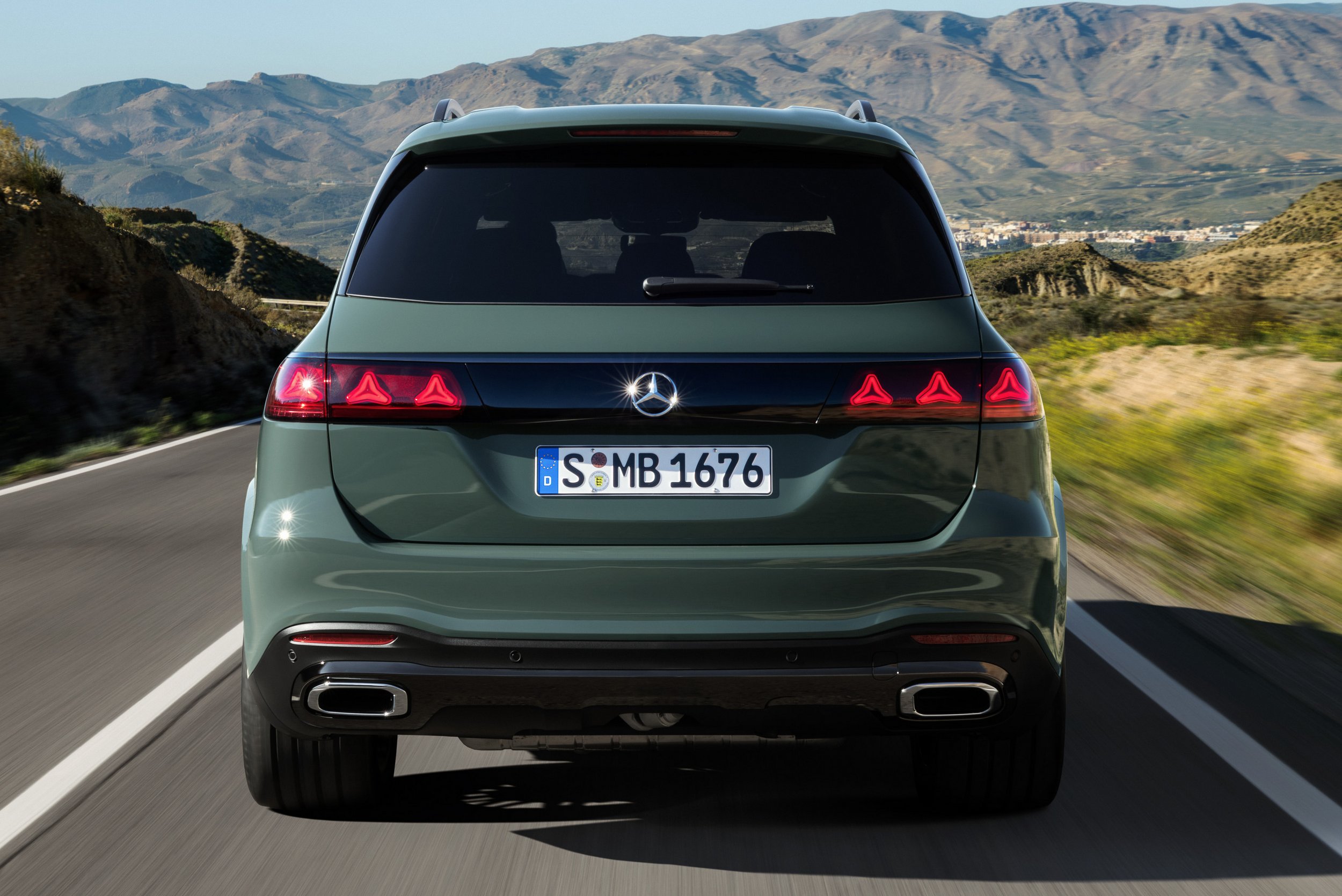 Háromágú csillagokat formázó nappali világítás, álló helyzetben világító, óriási háromágú csillag az apró háromágú csillagokkal berácsozott hűtőmaszkon, utóbbi körül szintén világító krómkeret: a GLS orra megérkezett 2026-ba. Hátul szintén Mercedes-embléma-dizájnt kaptak a lámpatestek, amelyeket fekete sáv köt össze, rajta a márka logójával – ha ember lenne a GLS, azt gondolnánk, önbizalomhiányban szenved, ezért hangsúlyozza ilyen harsányan a származását.