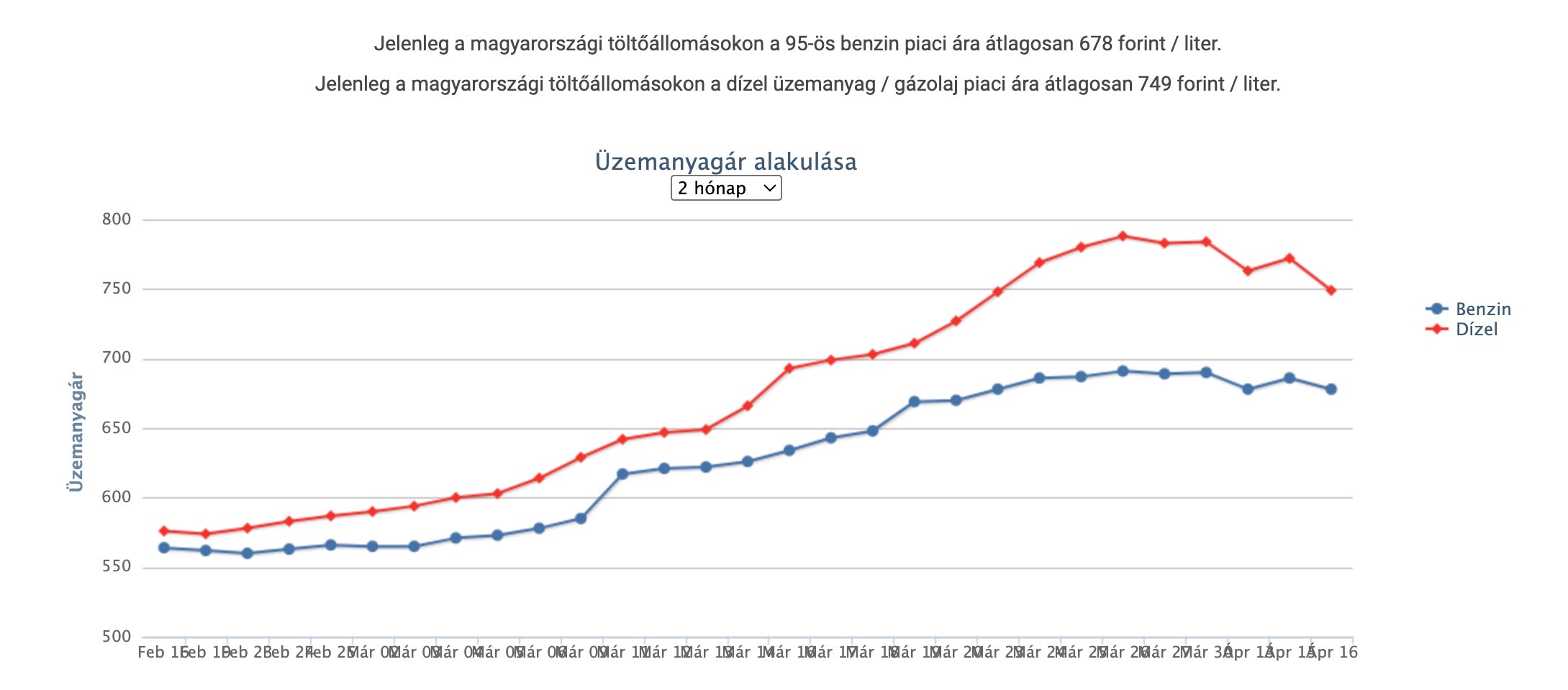 A Holtankoljak.hu adatai szerint a 95-ös aktuális piaci átlagára 678, a gázolajé 749 forint. Magyar rendszámos autók számára továbbra is a védett árak (benzin: 595, gázolaj: 615 forint) érvényesek.