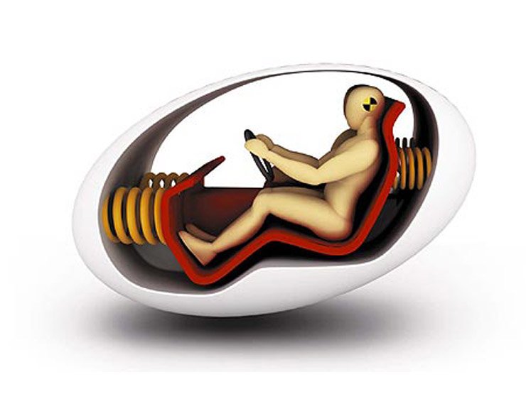 Belül egy nagyszilárdságú keretben foglalnak helyet az utasok, de ez még nem elég az üdvösséghez. Az ütközéskor fellépő hírtelen lassulás mérséklésére, – nagyméretű gyűrődő-zónák hiányában – összenyomható, alumíniumból készített, méhsejt szerkezetű anyagot használtak.