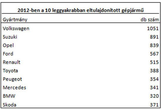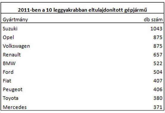 Az alábbi táblázat pedig a 2011-es, szintén teljes listát mutatja. Akkor még elsősorban a Suzukikra vadásztak a bűnözők.
