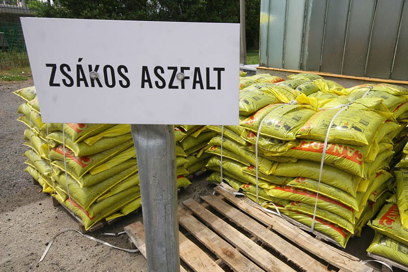 Télen a zsákos vagy ömlesztett hideg aszfaltos megoldást alkalmazzák. A hideg aszfaltnál a bitumenben lévő oldószer gátolja a megszilárdulást és csak a kiterített, meghengerelt aszfalt köt meg hidegen, azután, hogy elpárolgott belőle az oldószer. Északi országokban az év nagy részében nem is nagyon tudnának másfajtával dolgozni, de idehaza is kedvelt aszfalttípus, különösen kisebb útjavításokhoz használják, mert bármikor felhasználható, zsákban szállítható a felhasználási helyre, és a maradékot is egyszerű tárolni. Természetesen ez drágább a meleg aszfaltnál.
