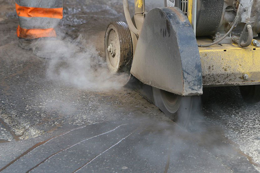 A kátyút körbevágják, majd eltávolítják a sérült részt