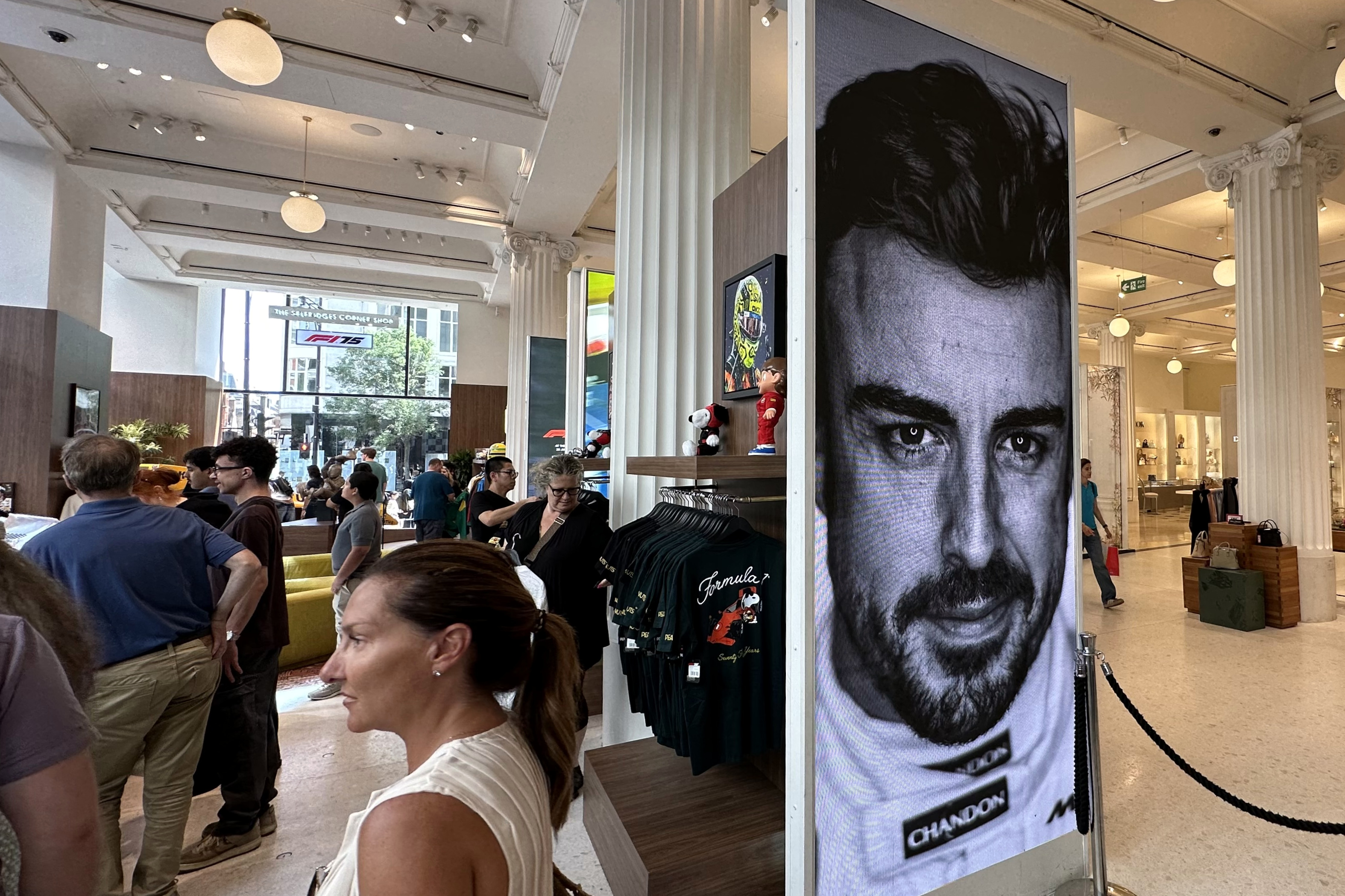A széria 75. születésnapjára azonban a film vagy éppen az év eleji nagyszabású szezonnyitó műsor mellett más dolgokkal is készült a Forma-1. Ide sorolható például annak az üzletnek a megnyitása is, mely London egyik legimpozánsabb plázájában, a Selfridges-ben kapott helyet. Az osztrák hétvége előtt a brit fővárosban jártunk, és ha már ott voltunk, megnéztük ezt az üzletet is.