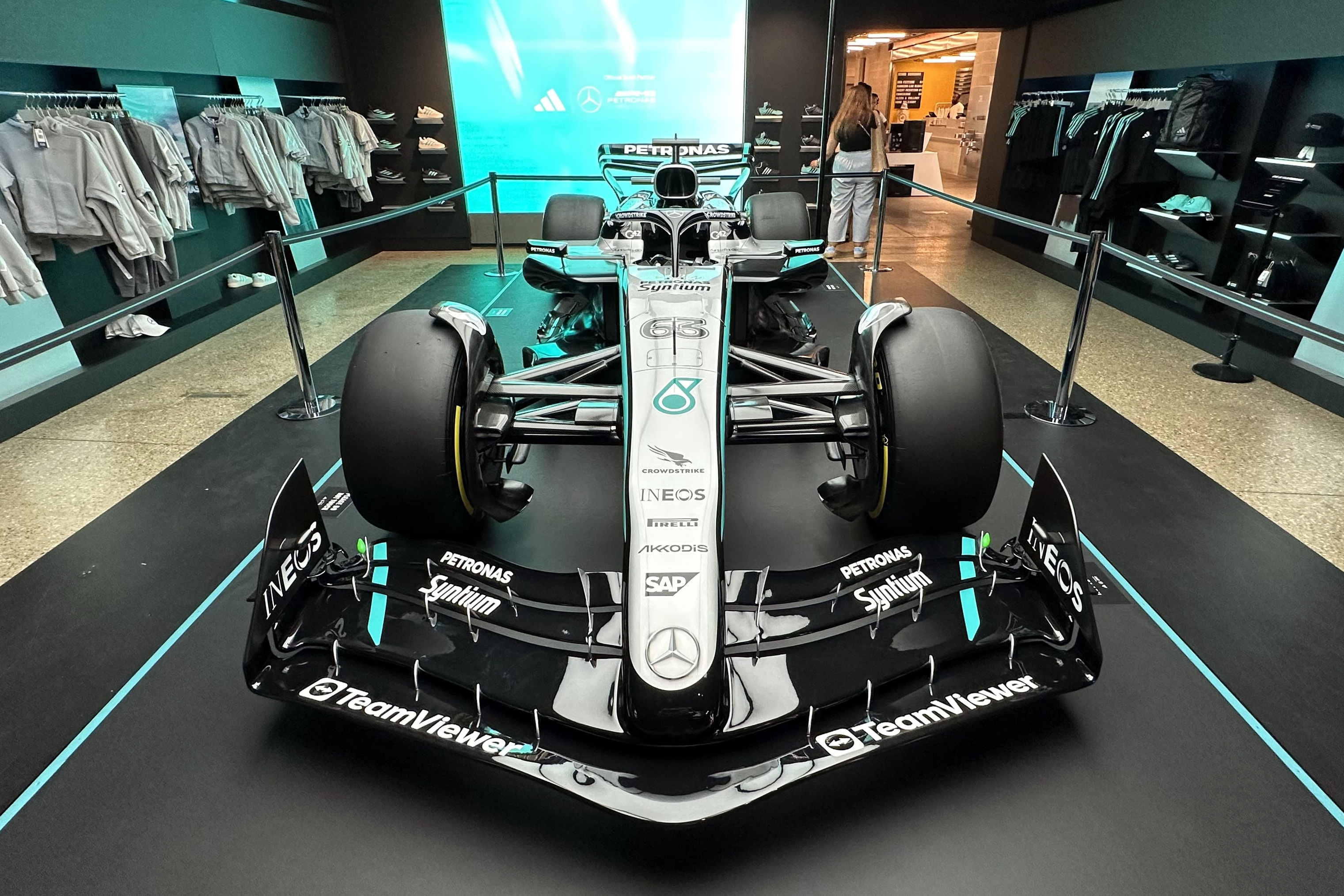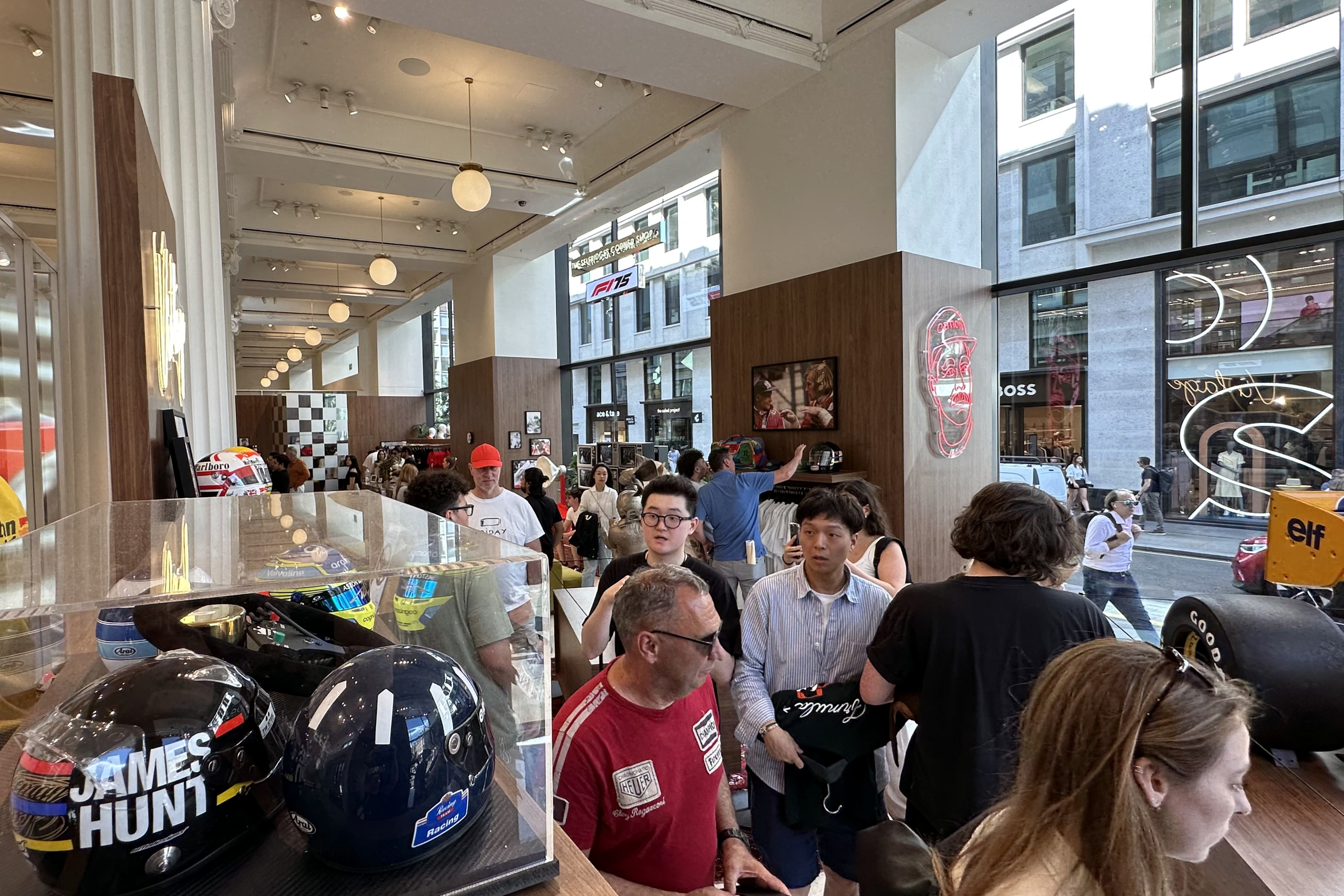 Az üzletet a pláza belsejéből lehet megközelíteni. Még mindig meg tud lepni, hogy az F1 milyen népszerű: az alapvetően luxusmárkákkal roskadásig telt épületre nemigen jellemzőek a sorok vagy a tömegjelenetek, az F1-es bolt előtt azonban sorba kellett állni. Bejutni csak akkor lehetett az egyébként nem nagy helyre, ha a megfelelő számú ember kijött.
