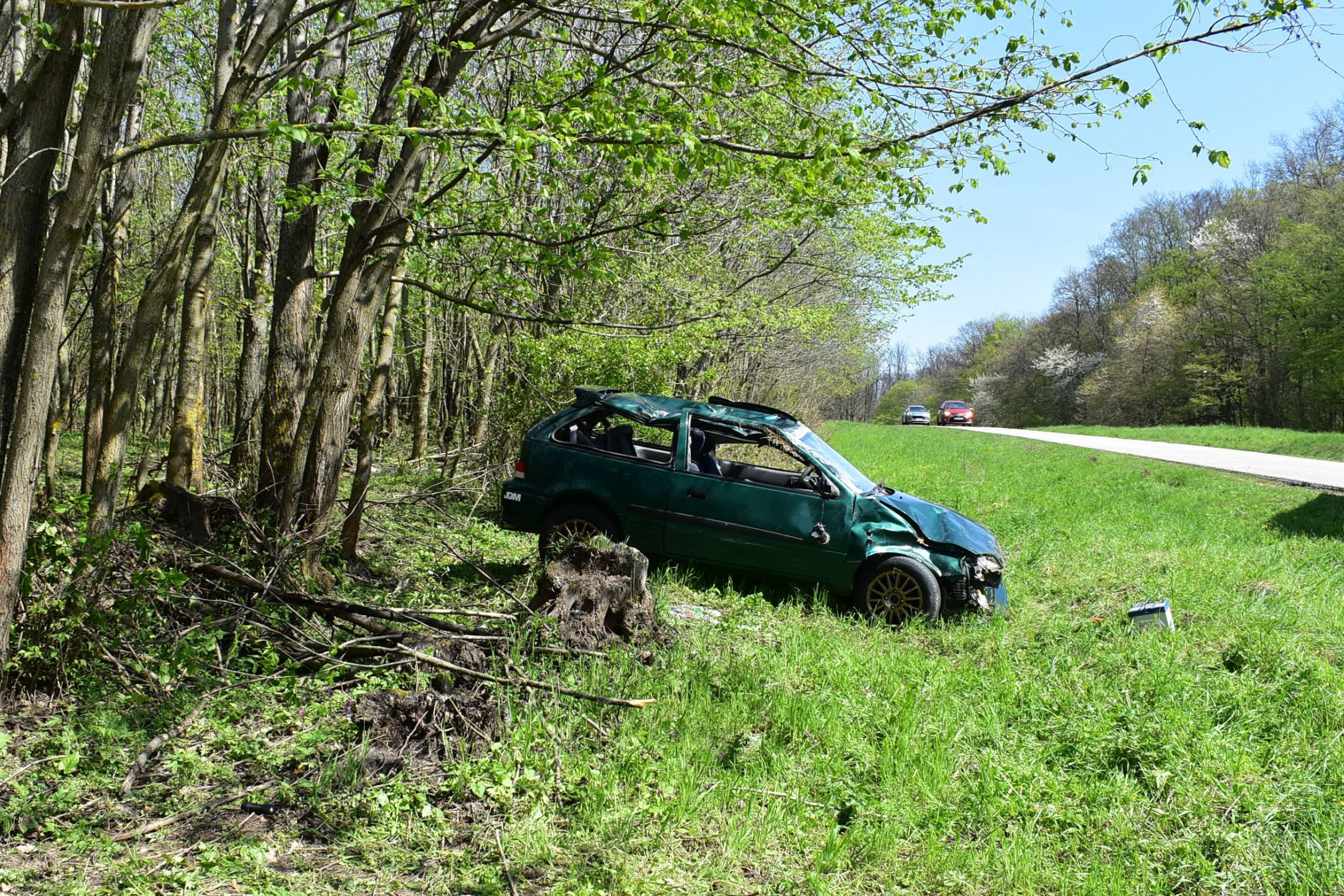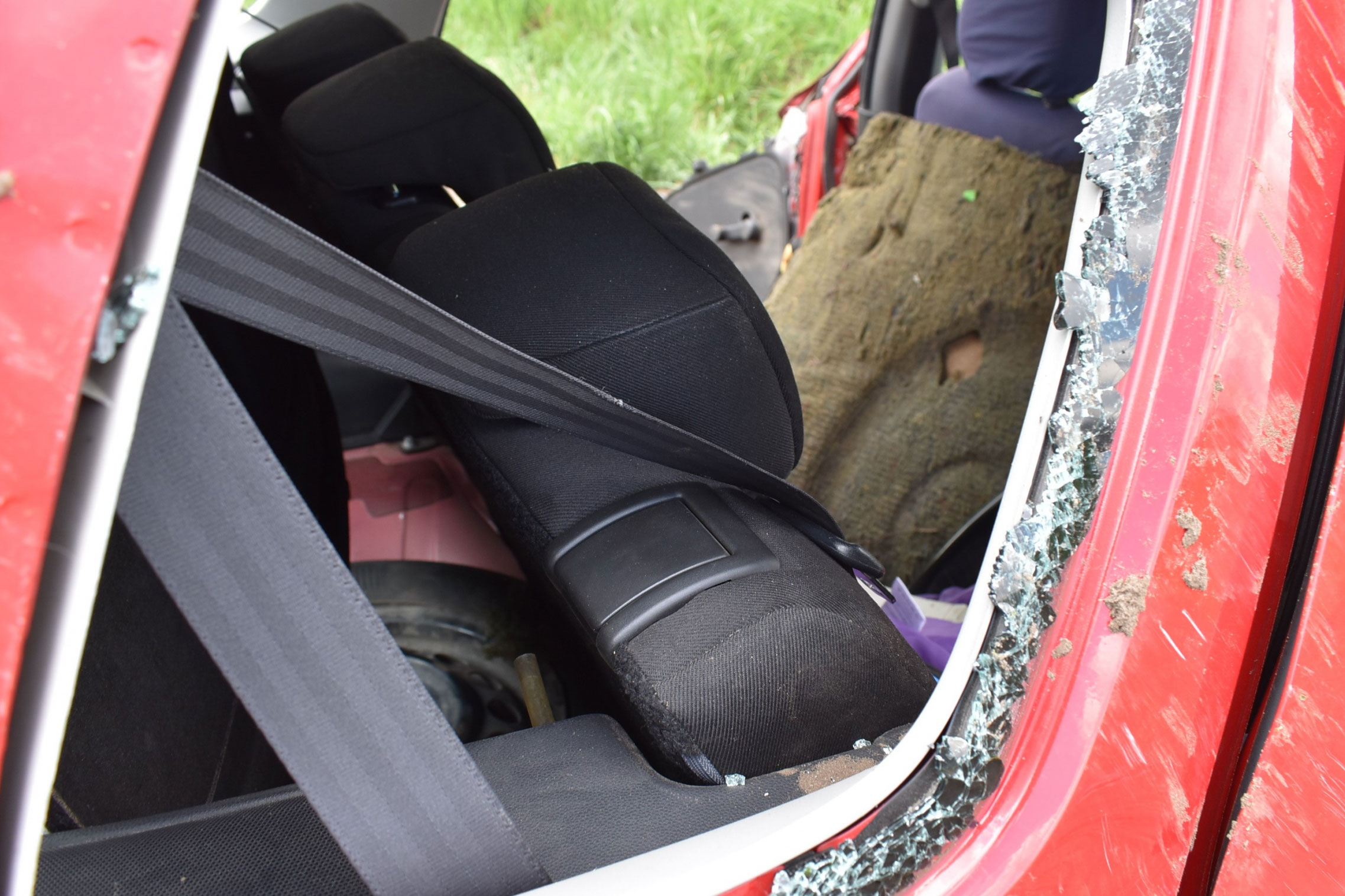 Ennek az autónak a vezetője sem kötötte be magát. A hátsó ülés lábrészéből szedték ki a tűzoltók (Kép: police.hu)