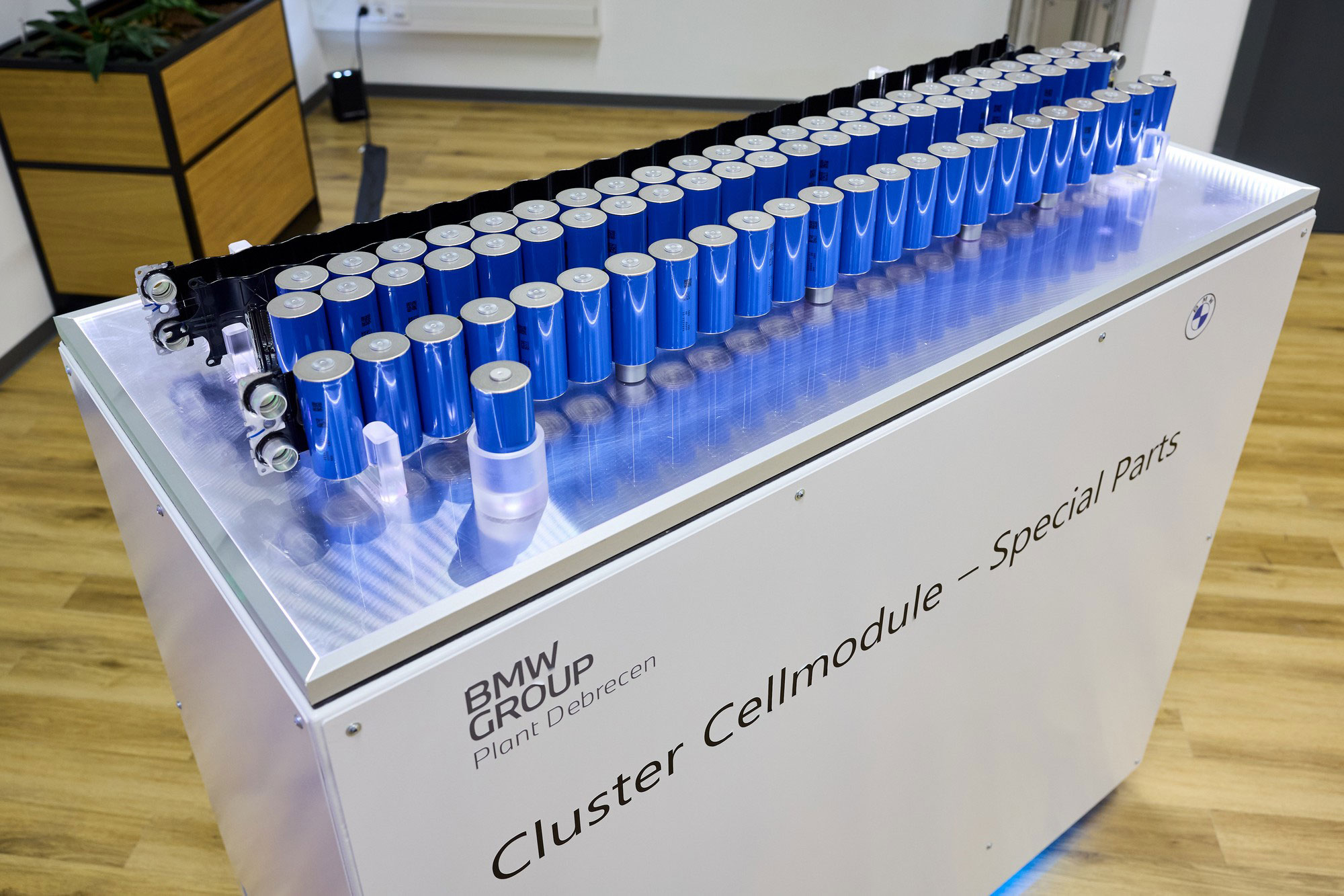 Az új a korábbitól eltérő formájú 46×95 mm-es hengeres cellák hűtése is hatékonyabb, egyenletesebb, kisebb az esély annak, hogy túlmelegedjenek. A gyárban nem akkumulátor gyártás, hanem csupán összeszerelés folyik, a cellákat a közelben éppen új üzemet építő Eve Energy szállítja a BMW-nek.