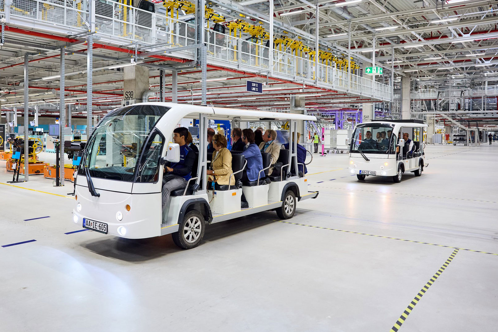 fűzi össze a különböző gyártási cellákat egy folyamatos termelési rendszerré. Közel ezer darab ipari robot dolgozik itt, miközben 450 féle egyedi fémlemezből, alu alkatrészből állítják össze az új iX3 kasztniját.
