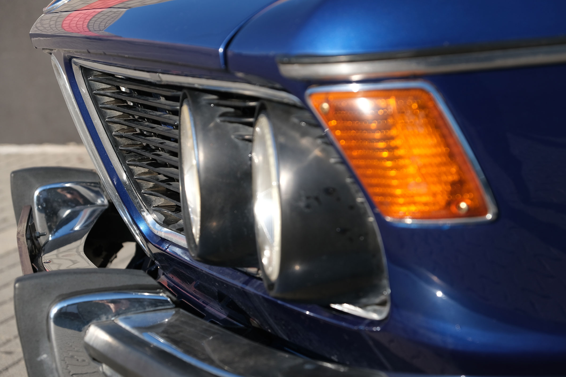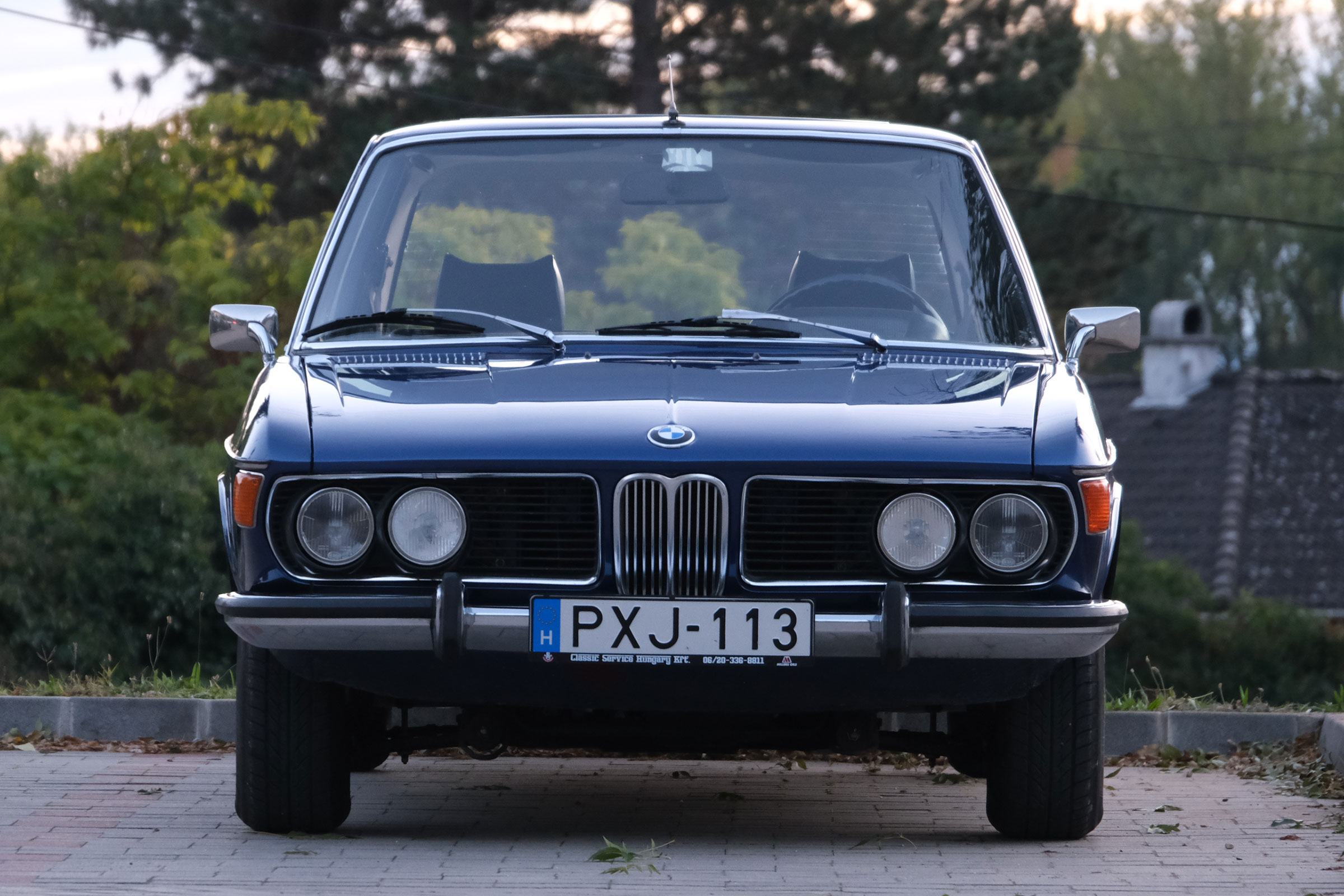 1973-as évjáratából fakadóan ez már az 1971-es modellfrissítés utáni autó. Az ikerfényszórókat keretező fekete hűtőmaszkkal sokkal modernebb, mint a fémrácsos előd. A négy kerek fényszóró itt jelent meg először a BMW-nél és évtizedekre meghatározta a formatervet.