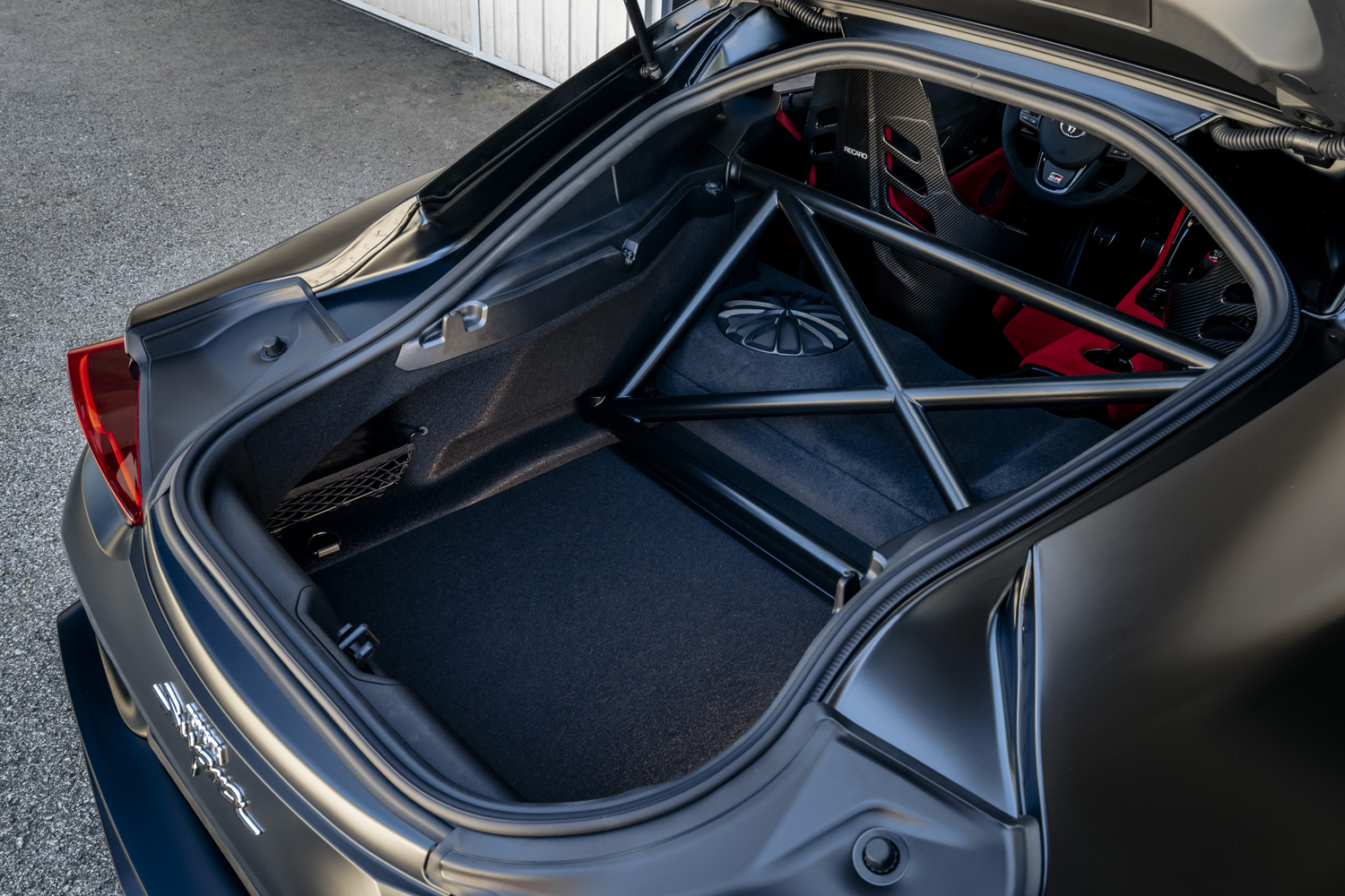 Kézi váltó és hátsókerék-hajtással kombinációja teszi frenetikussá az élményt, amelyet az állítható lengéscsillapítók és az áthangolt aktív differenciálmű alapoz meg. Kompromisszummentes sportautó, amelyben a kormányzás precíz és közvetlen, a merev karosszéria és feszes futómű együttese pedig kiemelkedő tapadást ad.