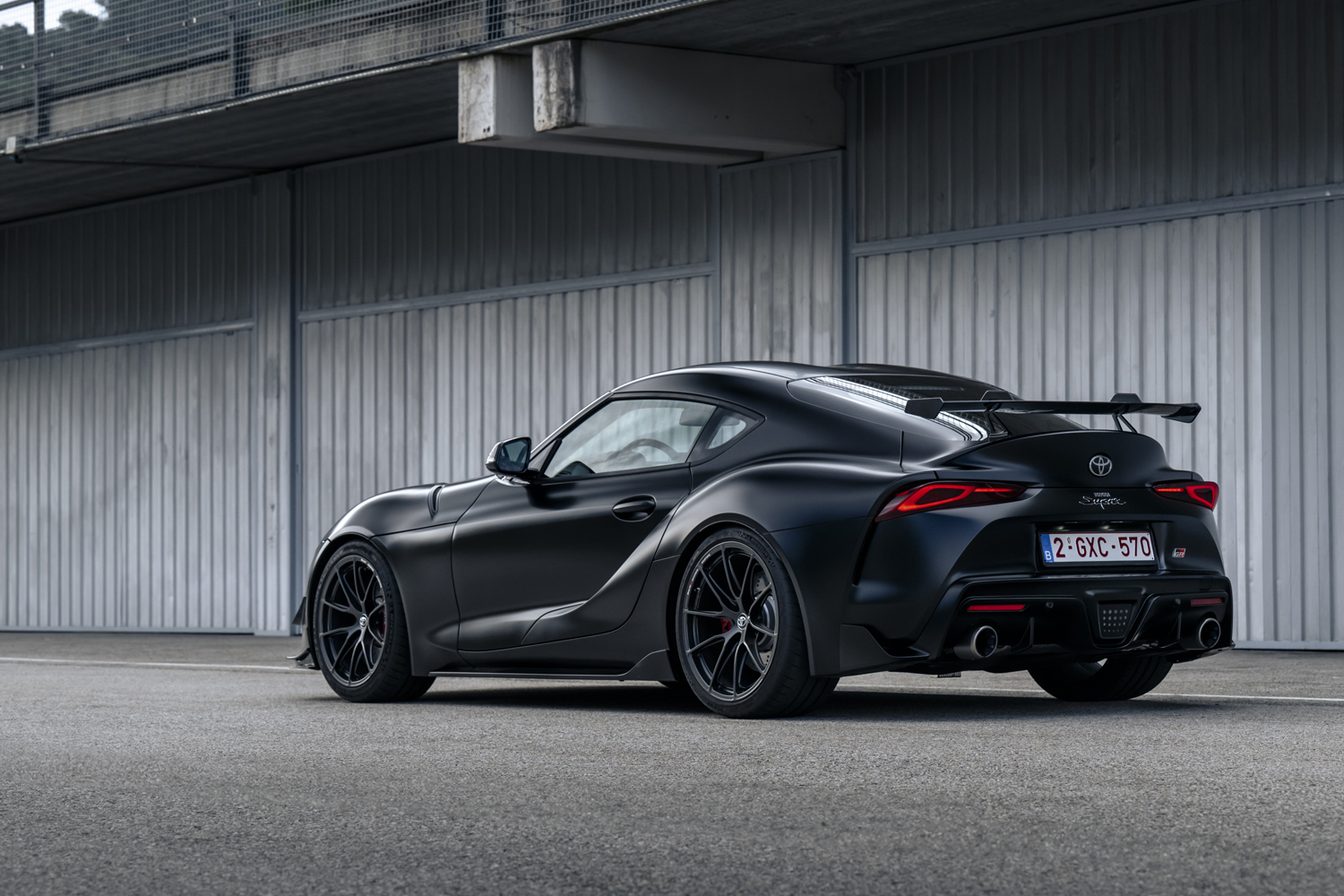 A Supra GT4 versenyautó hozadéka az érces hangú Akrapovič titán kipufogó is és a hátsó szárny kialakítása is. A kerékkombináció sem hétköznapi: elöl 19 colos, hátul 20 colos felnik adnak agresszív, egyben versenyautós megjelenést, a versenypályára alkalma gumik, nagy tapadást.