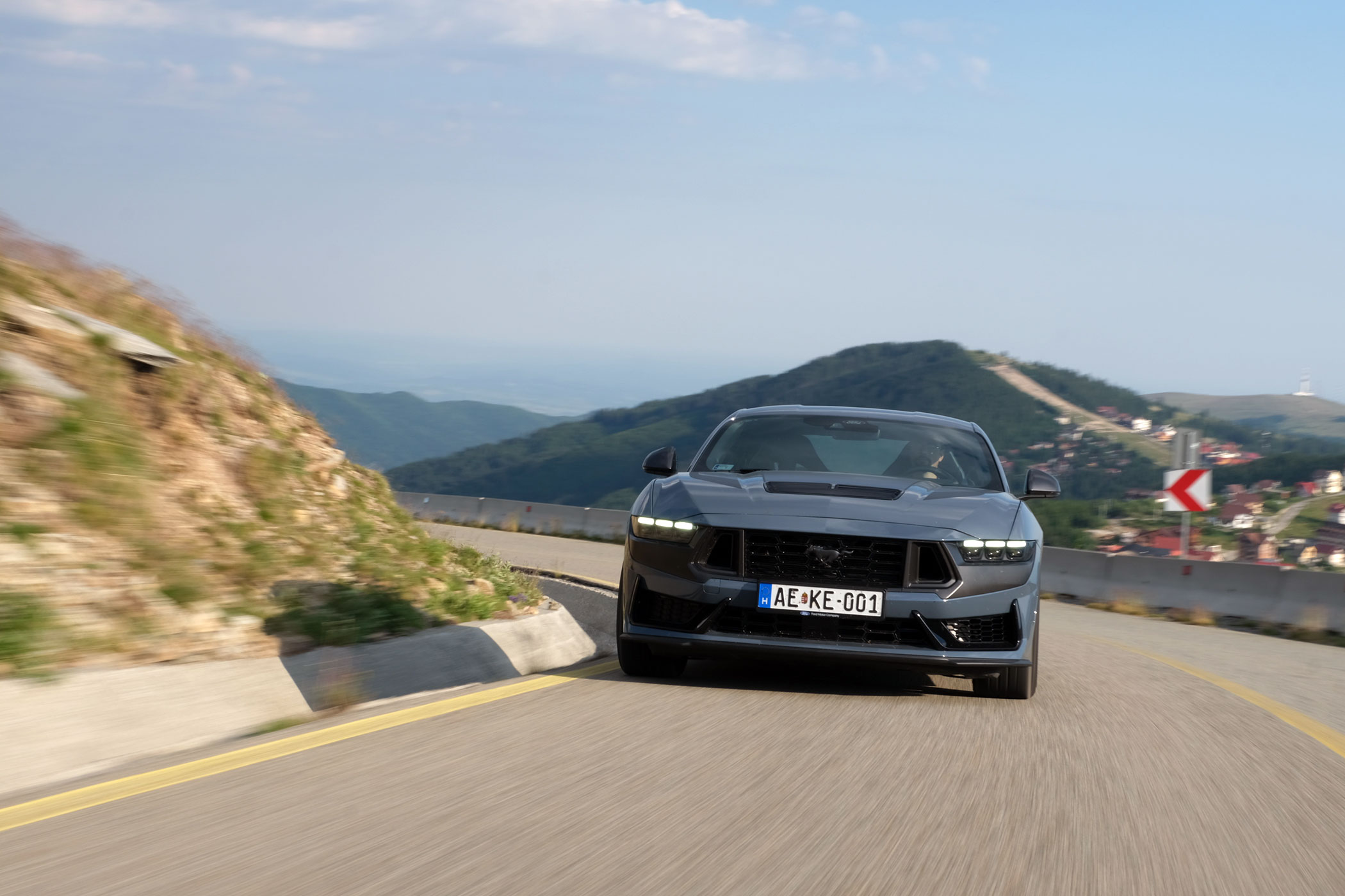 Minden idők egyik legjobb V8-a hajtja a Mustang Dark Horse hátsó kerekeit, a kézi váltó telitalálat, az adaptív futómű még inkább